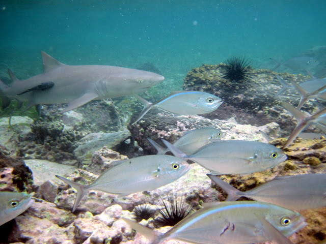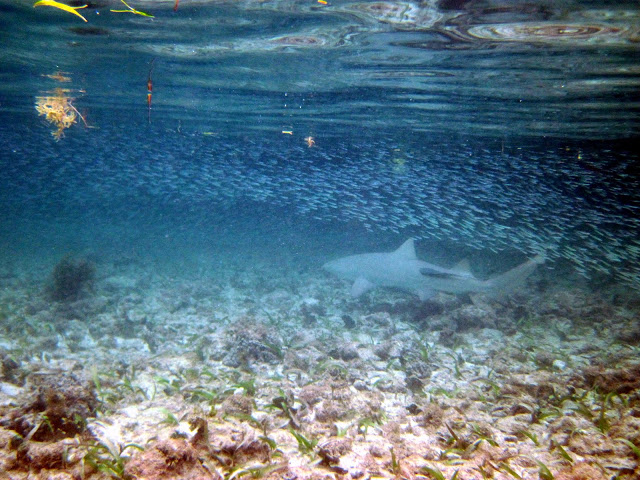 I followed this lemon shark for a little while and where ever he went fish got out of the way. This was the second time in the last few years that I have seen a lemon shark at this bay.