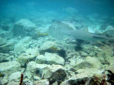 The shark followed this school of fish looking for lunch. This was as close as I wanted to get to him. He was giving me the eye as he swam by.