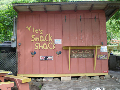 Vie’s is a little snack stop that serves up chicken and other lunch items along with cold drinks. Vie herself runs the place and also rents beach chairs on the beach just accross the street. It’s the only place to get food and drink this far east on St John making it a great stop for folks enjoying the bays on this part of St John.