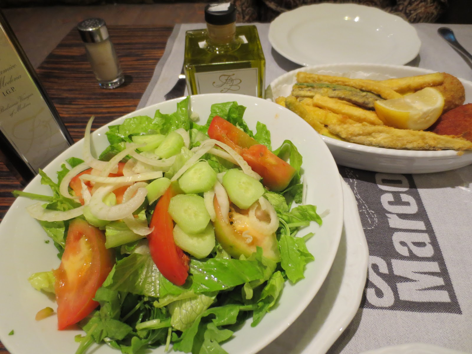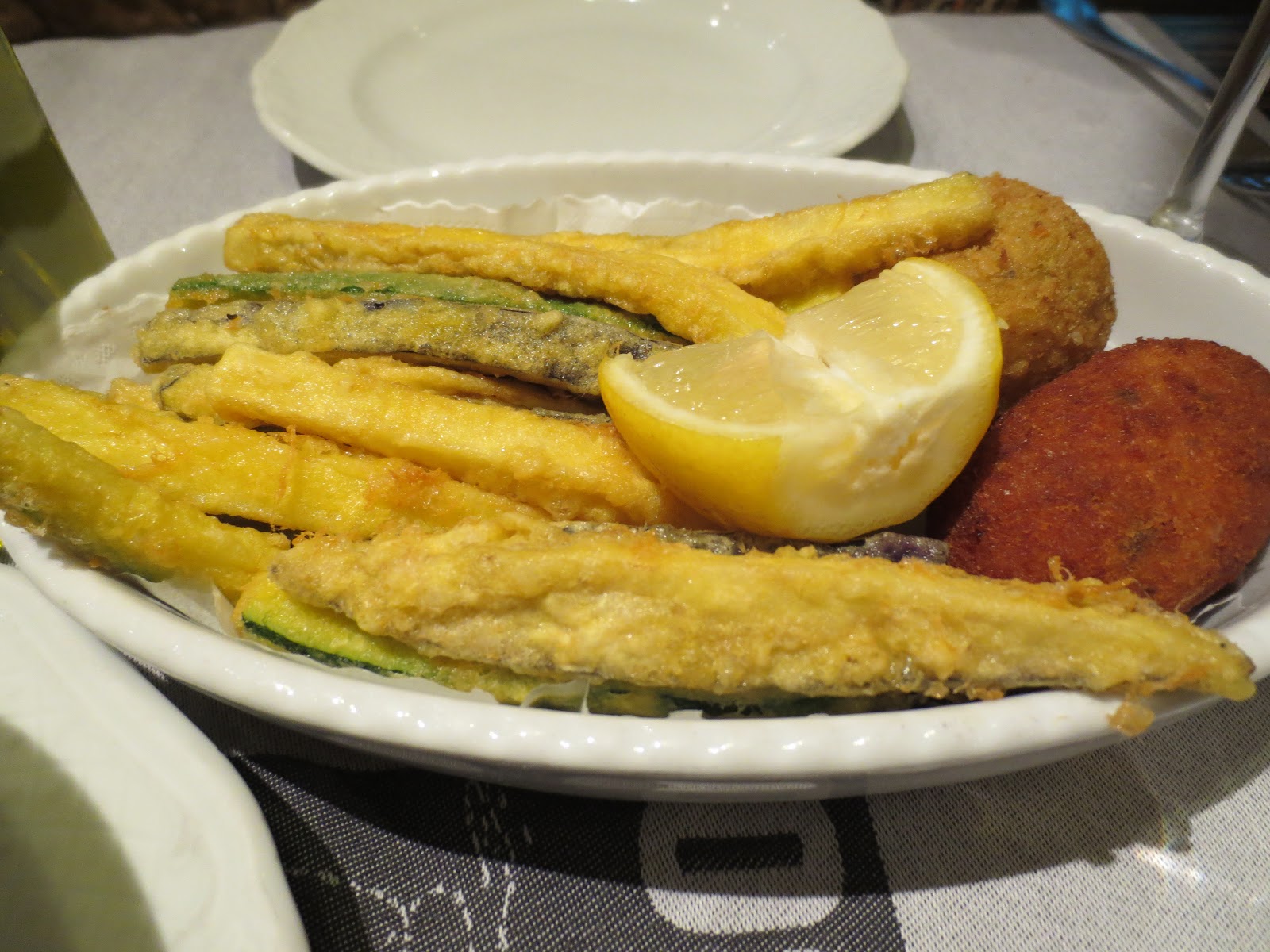 The fried vegetables were done in a tempura batter that was very light. Squash, rice balls, and a deep fried zucchini blossoms with mozarella and anchovie. A must!