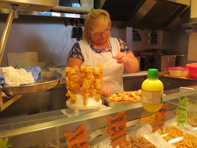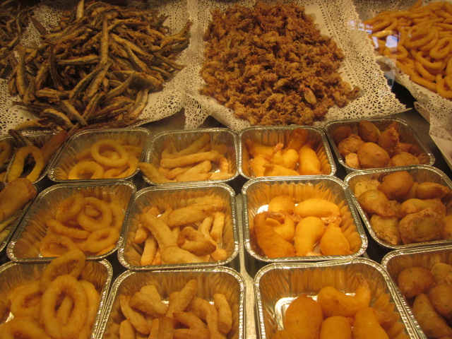 Deep fried seafood on a stick.