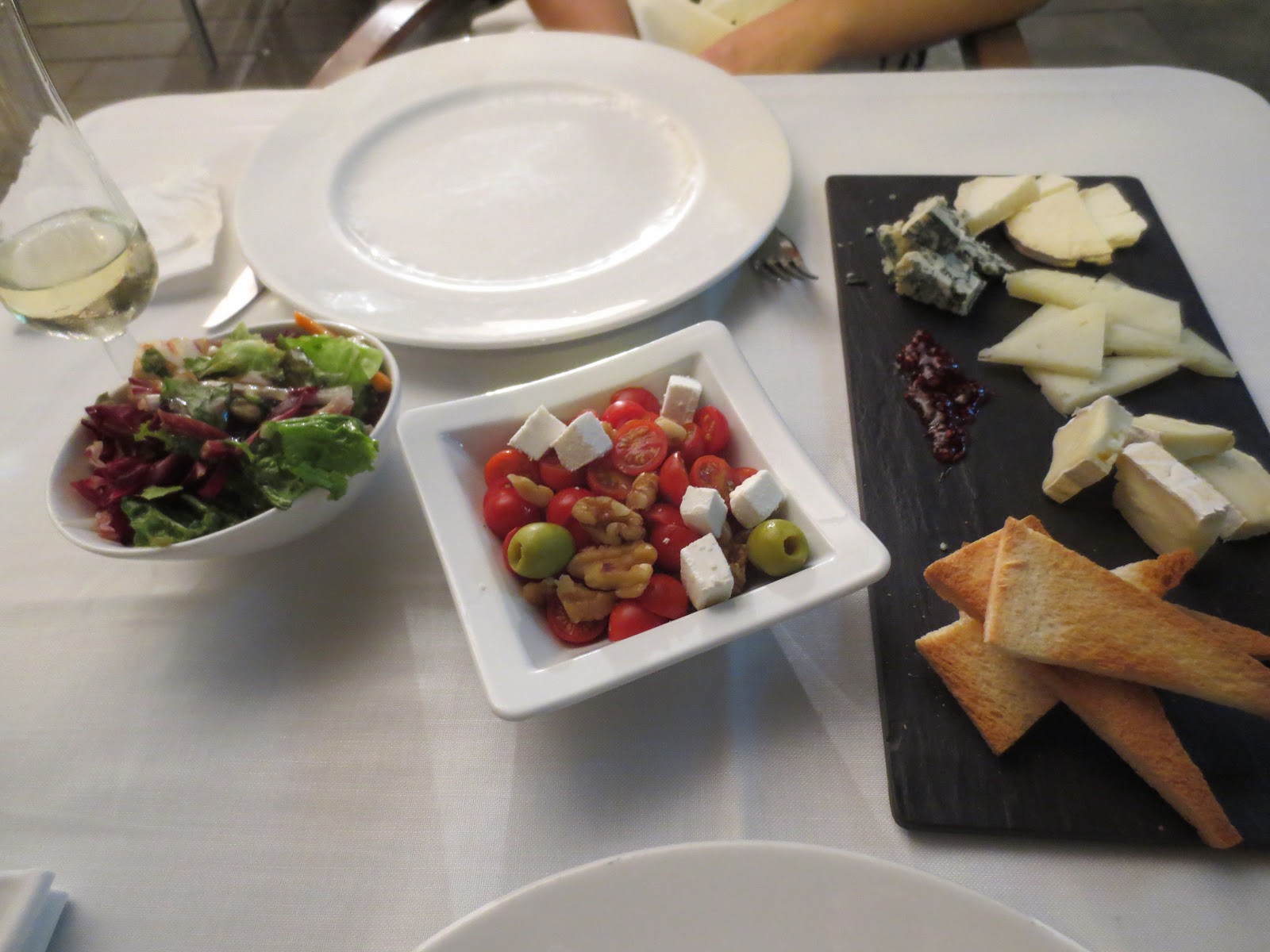 Our last night in Barcelona we sat down at the Farga Tapas Bar and Restraunt on the same street as our hotel for a great dinner. The Farga serves a super tapas menu as well as a full dinner menu. We started with a greek salad, green salad, and a cheese plater.
