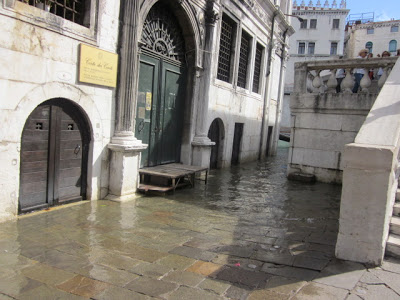 When the tide rises sea water levels bring the ocean into some of the most popular areas of Venice. Here you can see the canal rising to street level.