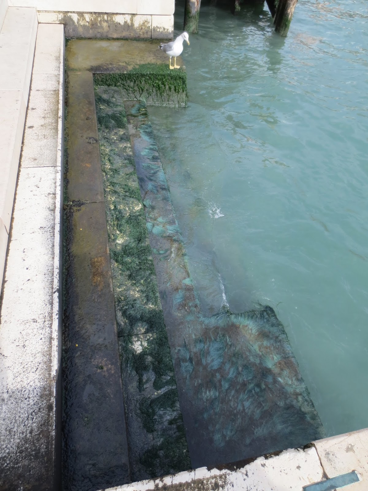 Of all the great homes and buildings that line the canal of Venice none have use of the ground floor thanks to the rising sea levels. Here is an example of how far water has risen. It is a picture of some stone stairs that led down to the water but are now permanently submerged. 4 of the stairs never come above the water level now. Is the sea rising or is Venice sinking? All I can say is visit this beautiful city while you can…
