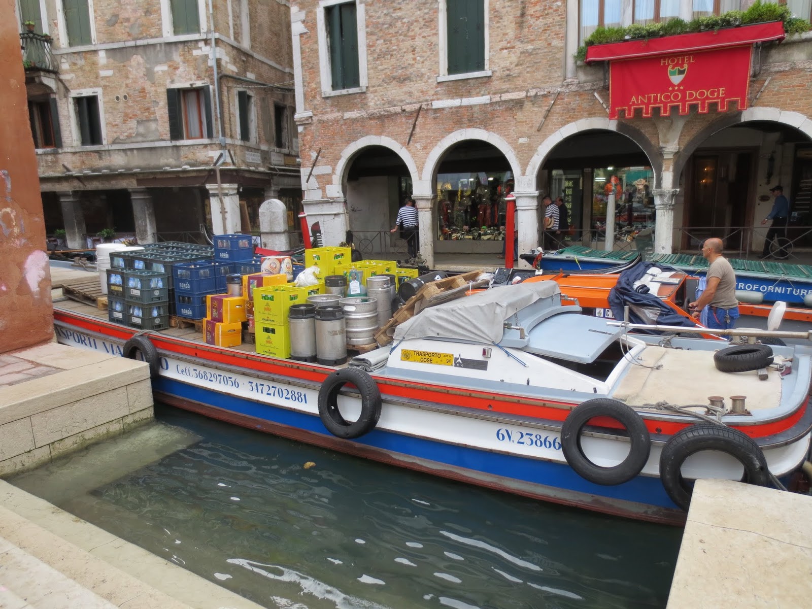No cars or trucks can drive in Venice so everthing is transported by boat.