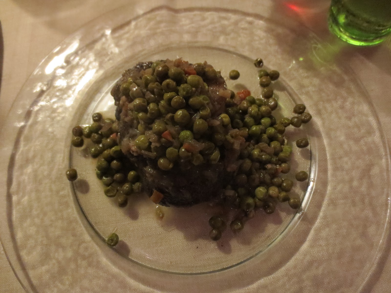 Oso buco with peas. Delicious! Washed down with some red wine from local wineries.