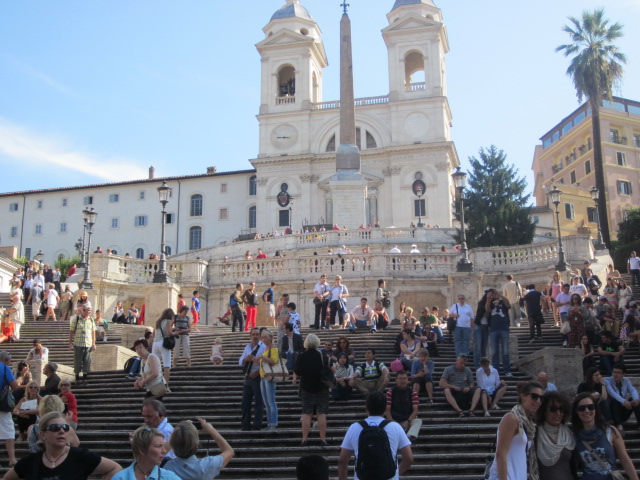 Many tourists and locals come to sit on the Spanish steps to people watch and enjoy the views of Rome.