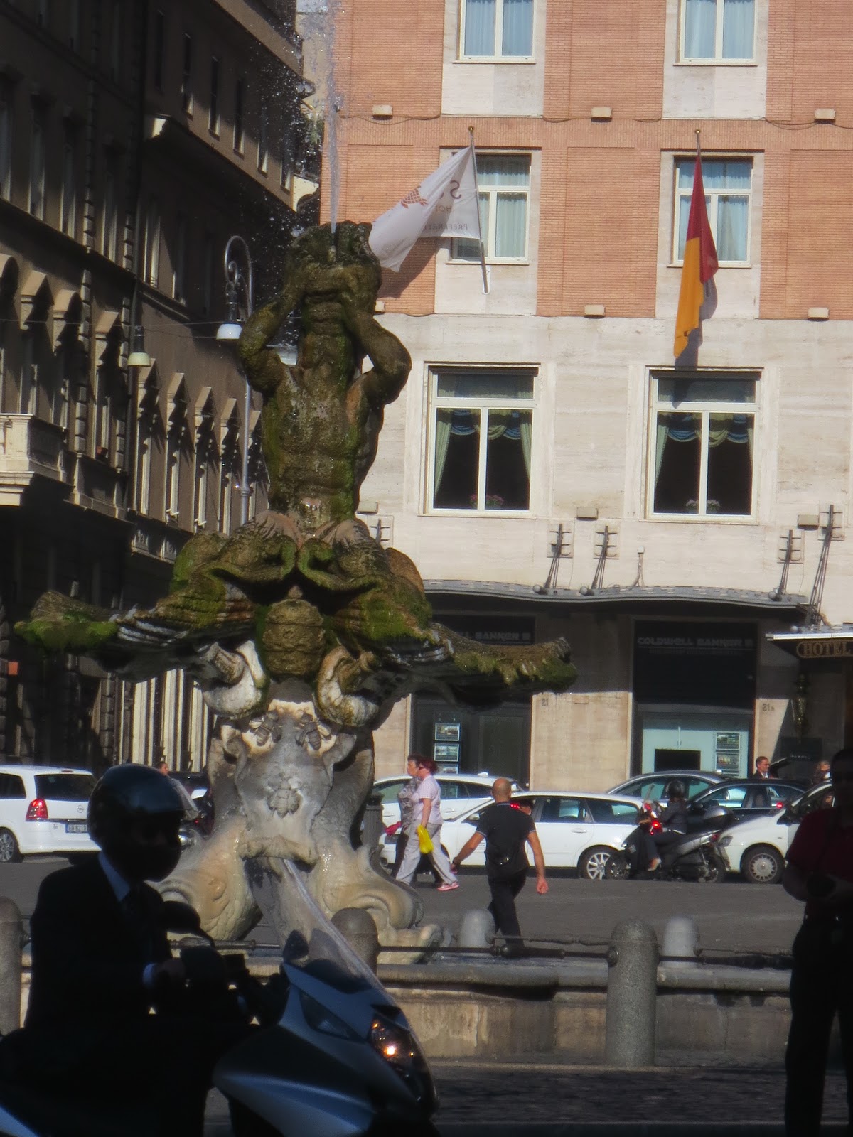 At the centre of the piazza is the Fontana del Tritone or Triton Fountain sculpted by Bernini in 1643.