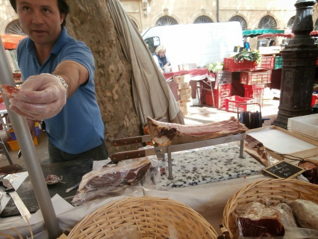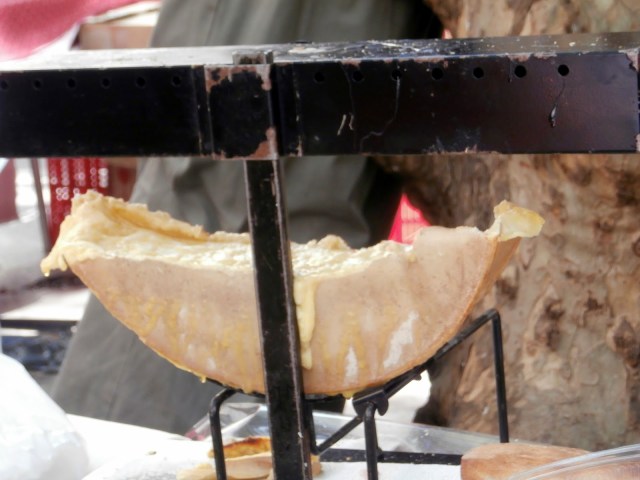 This is pure heaven! Cheese melting over a burner at an open air market in Aix.