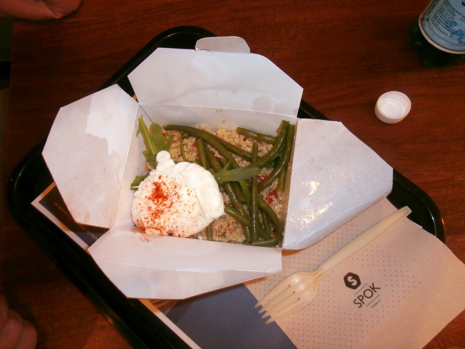 Stopped into Spok for a quick bite. What a great little concept restaurant. Boxed meals and made to order as well. Couscous, French style green beans, cheese.
