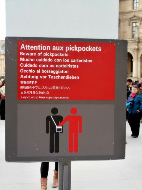 While waiting in line to get into the Louvre Museum in Paris you are greeted with these signs warning you to beware of pickpockets. Although I have never had an issue with pickpockets I have friends who have. Nothing puts a damper on the excitement of going into the Louvre like these signs and what they represent. While on vacation anywhere you have to be cautious and aware of your surroundings.