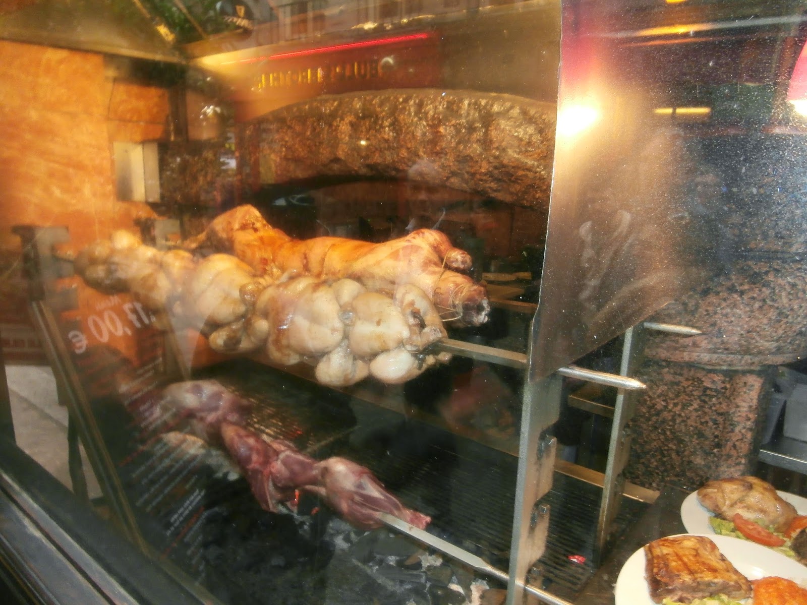 Along the Paris streets there are vendors and restaurants grilling meat and poultry. Here a vendor grills whole pigs on a rotisserie. These places are packed with locals. Don’t pass by without trying it.