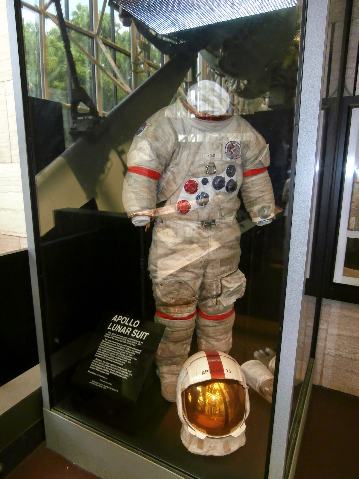 On display at the National Air and Space Museum is the original space suit worn by Astronaut David Scott on the Apollo 15 mission to the moon. It still has moon dust on it. Amazing!