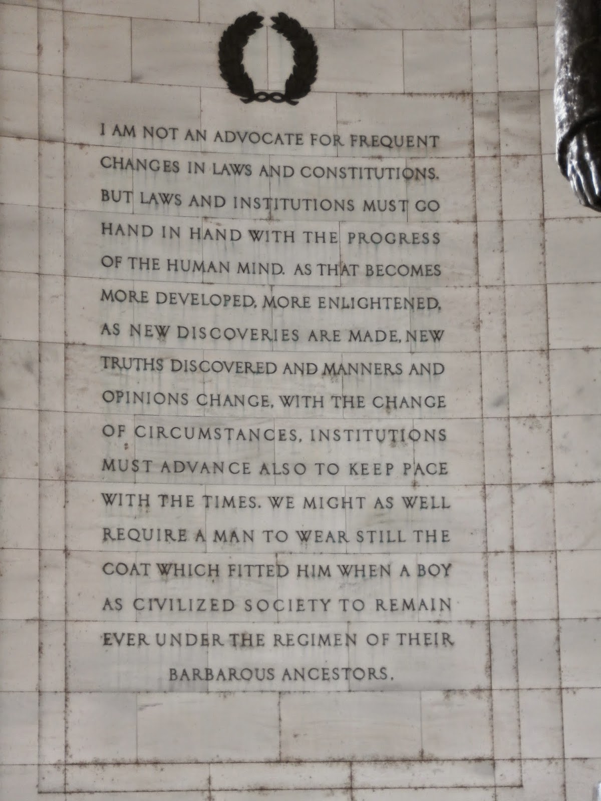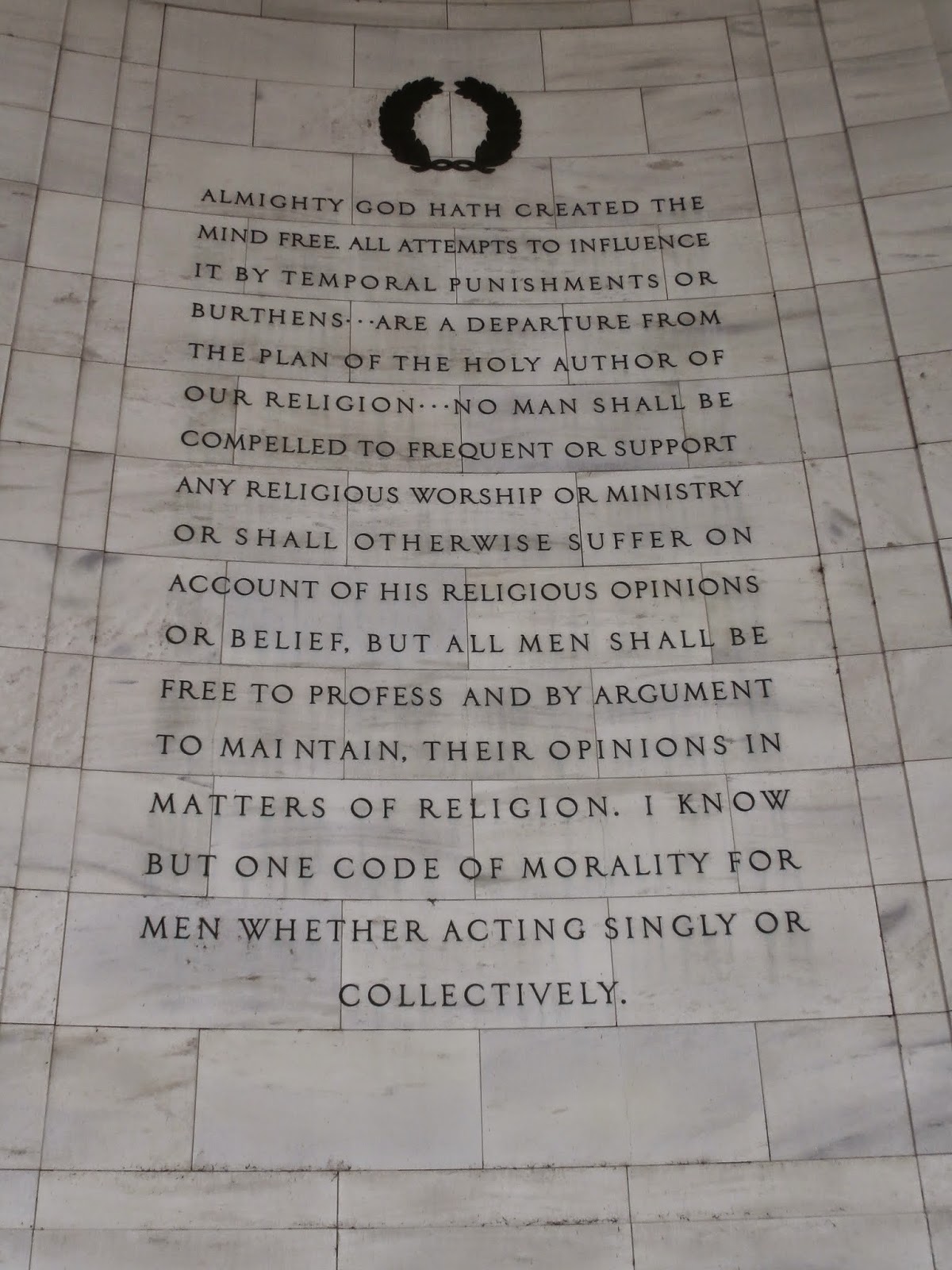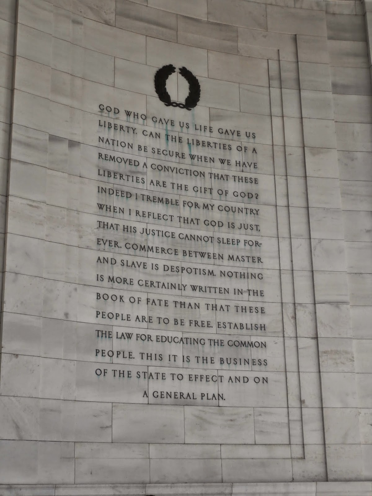 Engraved all multiple walls in the memorial are excerpts from the Declaration of Independence.