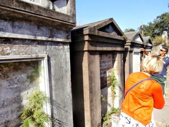 While visiting the Garden District of New Orleans I took a guided tour of the local cemetery. Great fun. Pictured above, my guide points out some of the celebrity dead as well as gives information of the above ground burial process.
