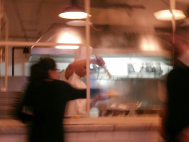 The chefs are busy preparing your dish as you look on.