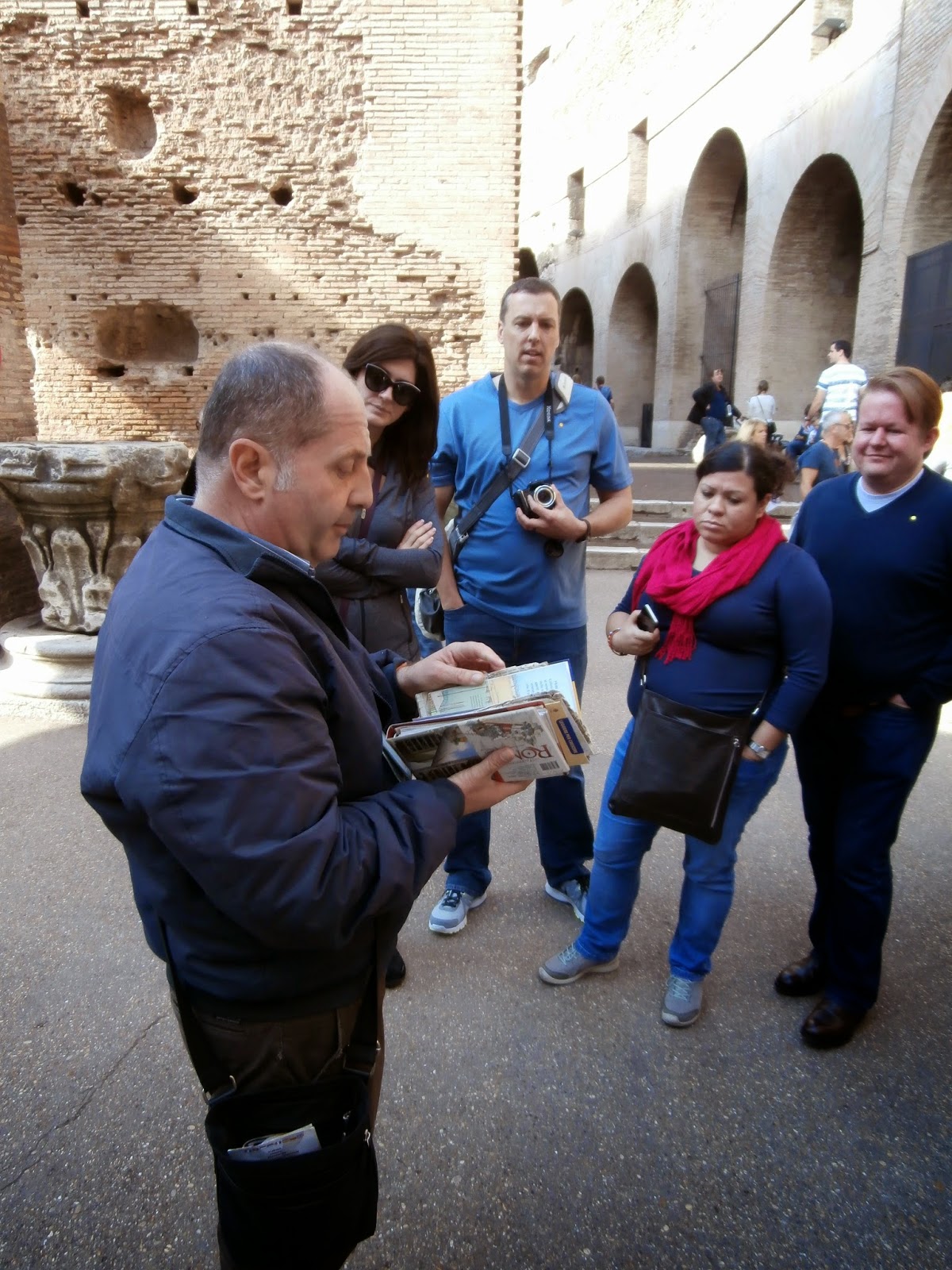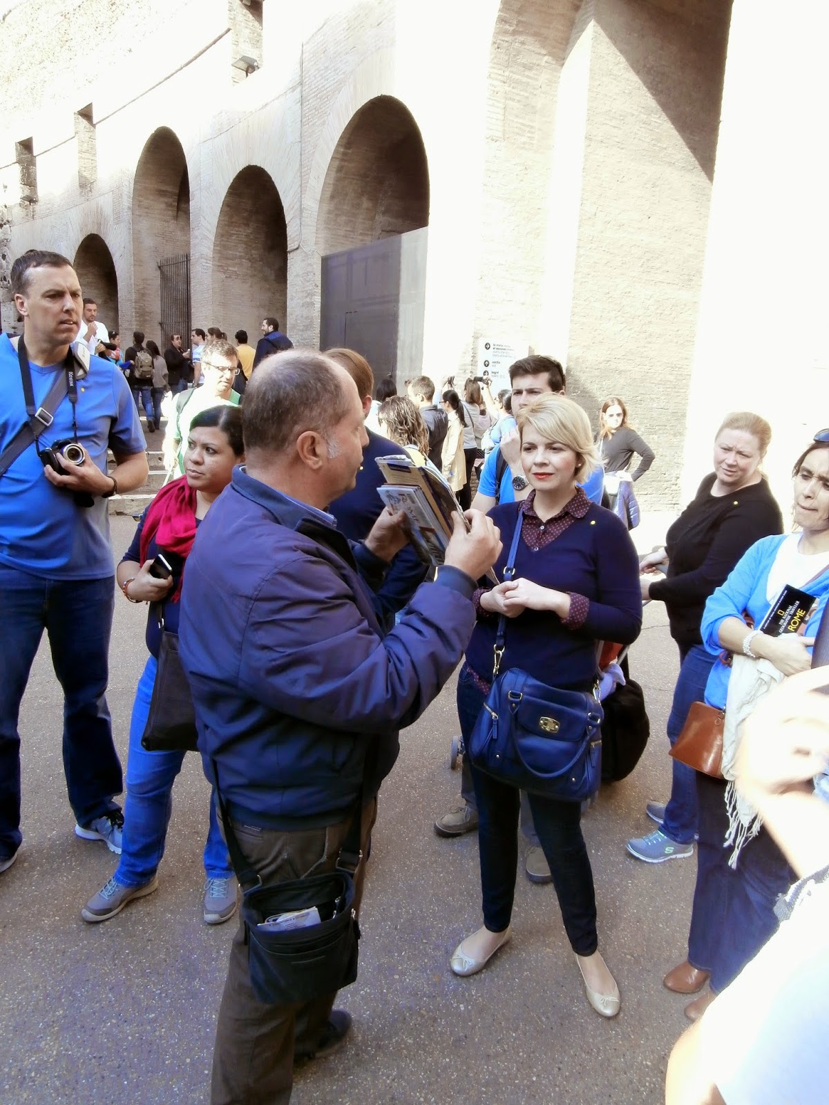 Pictured here my tour guide informs our group and uses reference books to help tell the story of the Colosseum.