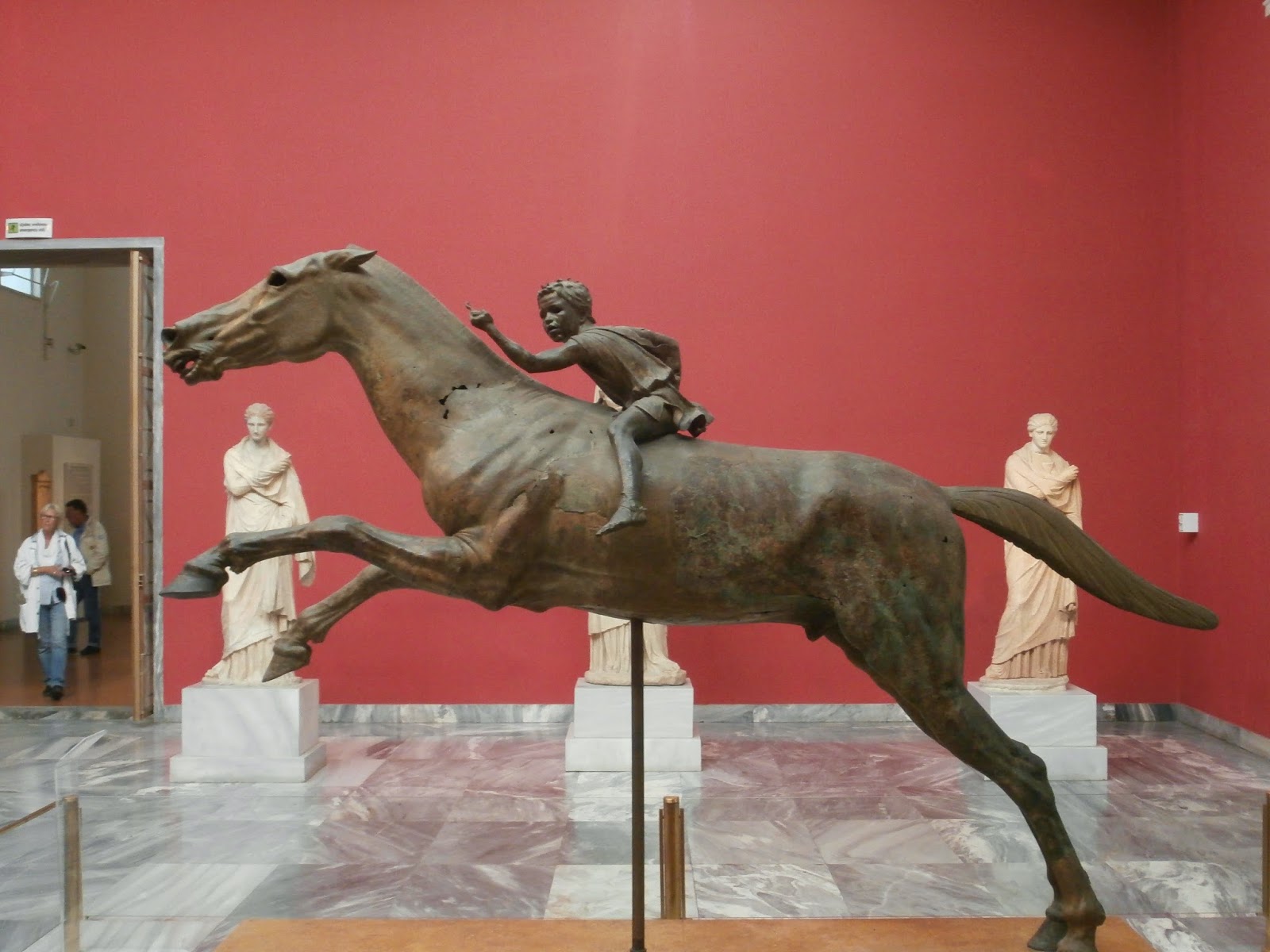 This beautiful statue of a boy riding a horse is one of the best preserved bronze statues on display here at the National Archaeological Museum in Athens. Most large bronze statues were melted down over the centuries but this one, known as The Jockey of Artemision, dates back to 150BC and survived after being found in a shipwreck.