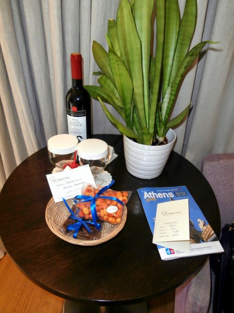 When I arrived in the room I was greeted by a free bottle of Greek wine and snacks courtesy of the hotel Manager.