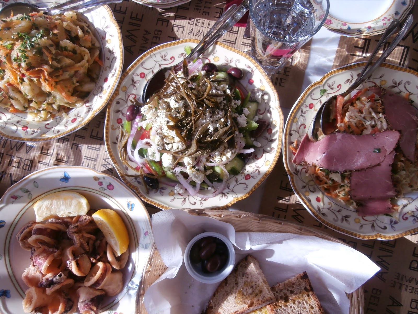 While visiting the shore in Athens I came upon the charming Belle Amie Restaurant and decided to stop for lunch. The Belle Amie is located in the Piraeus area of Athens and as you can see from the photo serves up a variety of meats, Greek salads, and seafood. Everything on the table was delicious and this was one of the best meals I had on my entire trip.