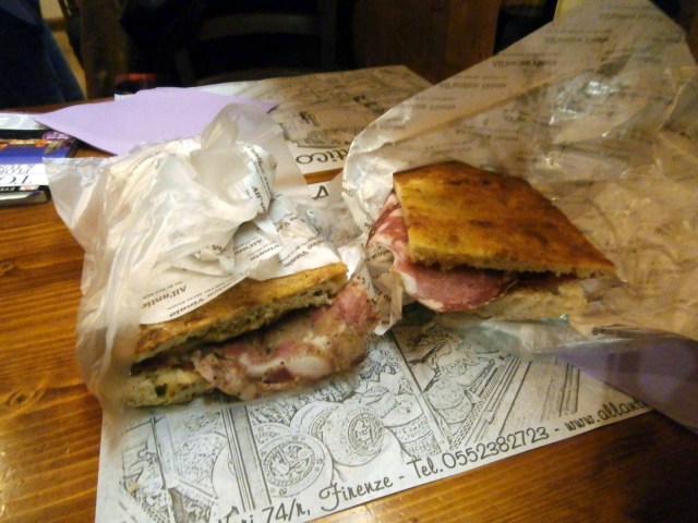 In Italy as in most of Europe, dinner is usually very late in the evening so to get me through the day I like to stop and have a late lunch or snack. While wandering the streets of Florence I came across the All’Antico Vinaio and at first sight I knew I had to eat here.