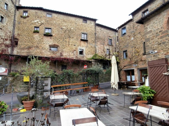 Small Tuscan towns like this usually have a few places to stop and eat and the locals are very happy to have you.