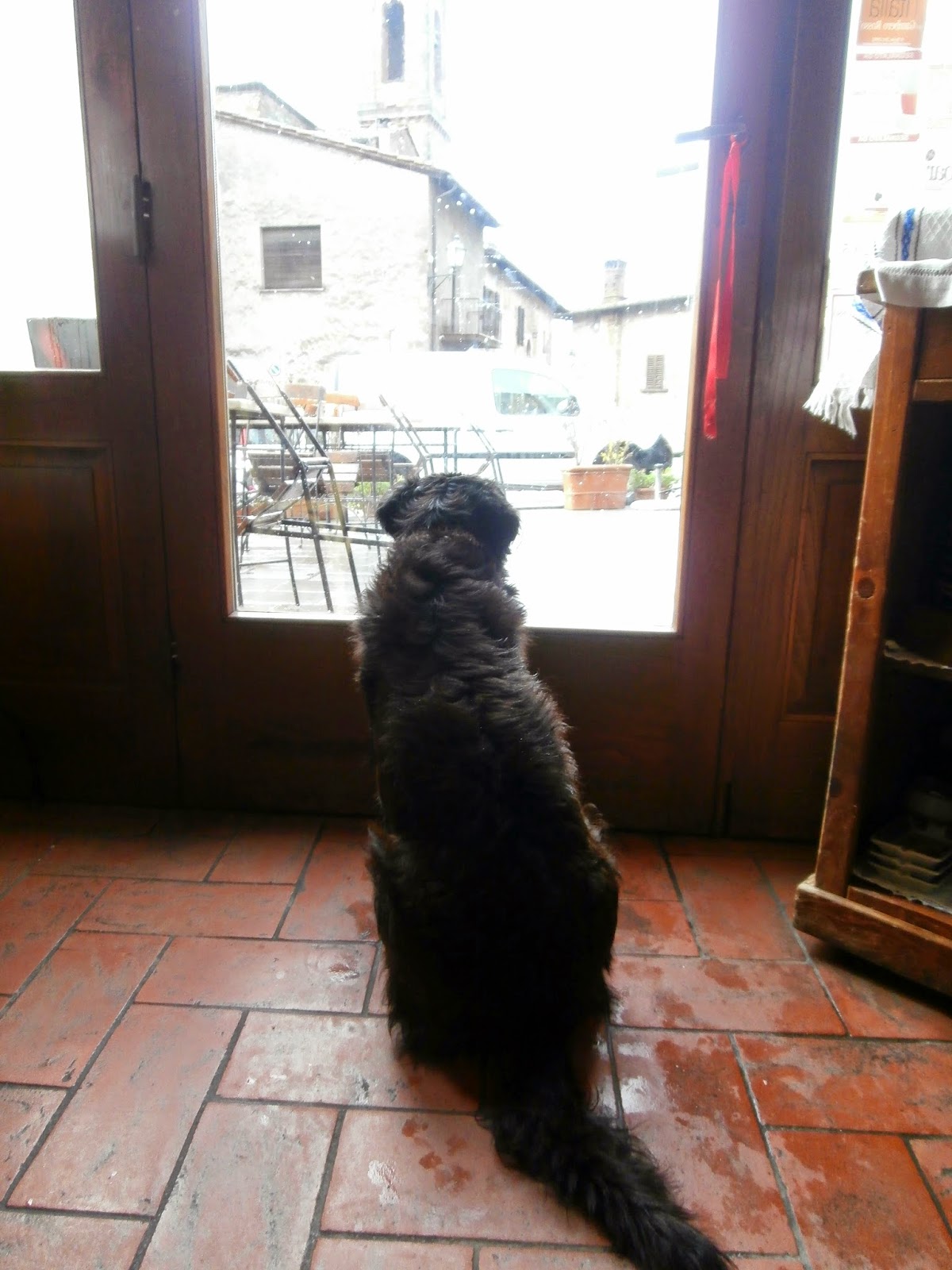 At Bar Ucci, Grandma’s old dog watches the goings on outside while staying warm and dry.