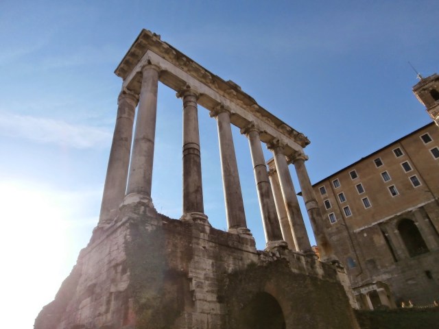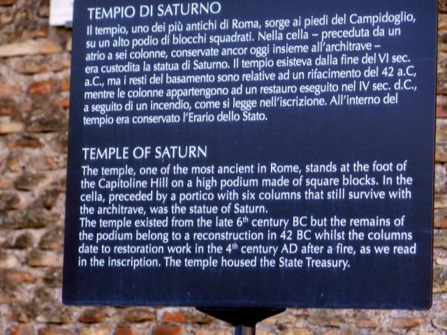 The original Temple of Saturn dates back 427 BC but scholars aren’t exactly sure. In Roman times the Temple may have housed the State Treasury.