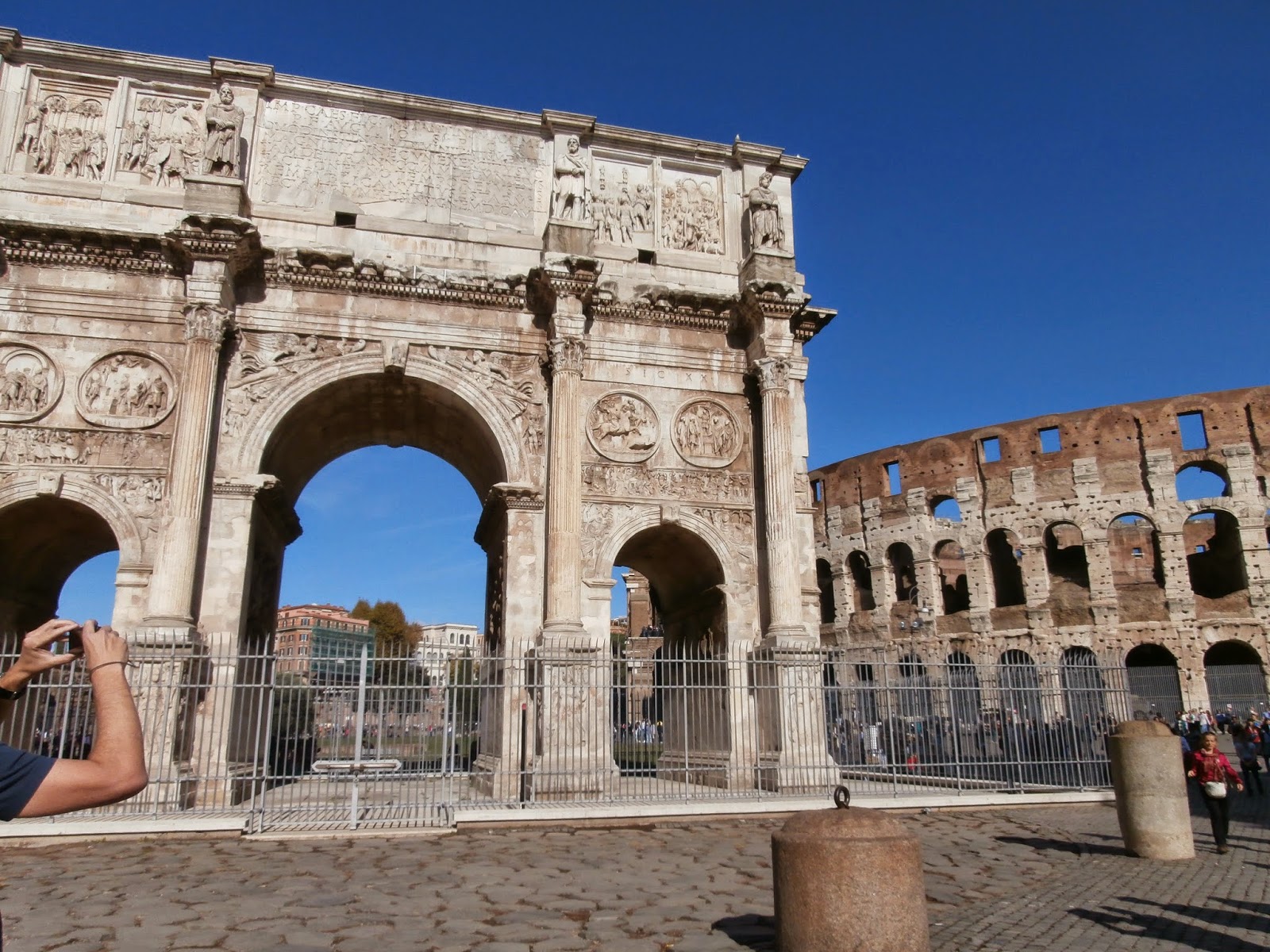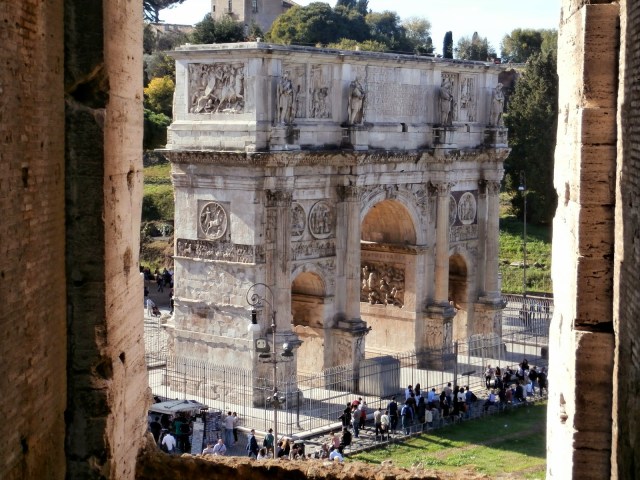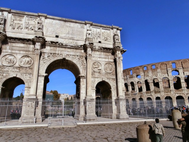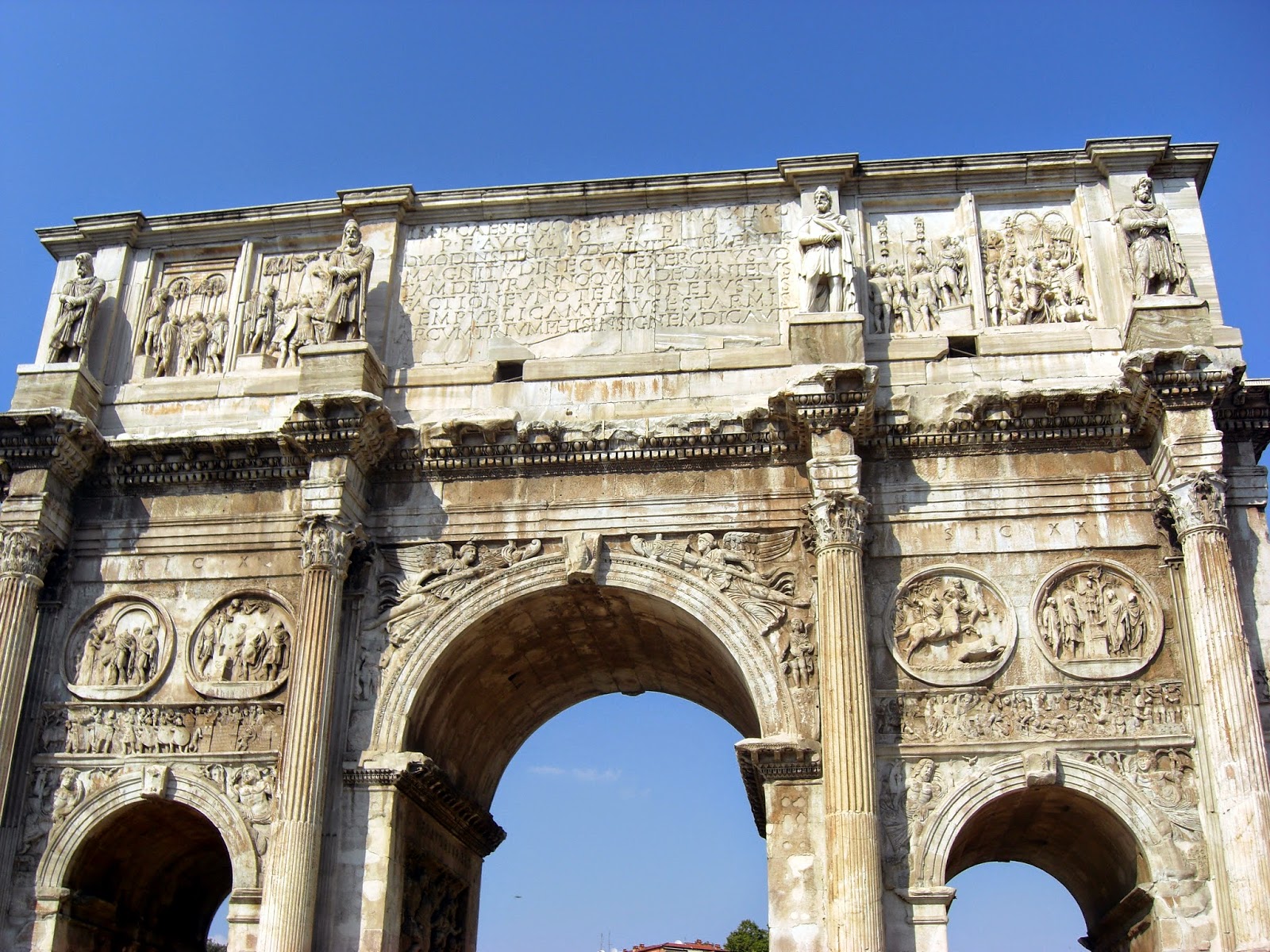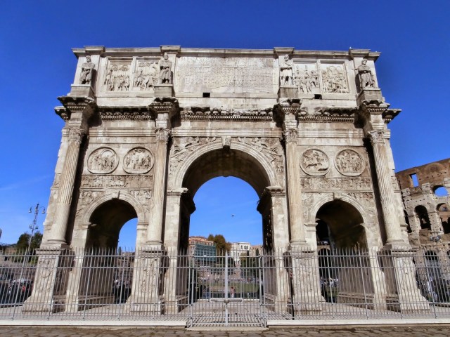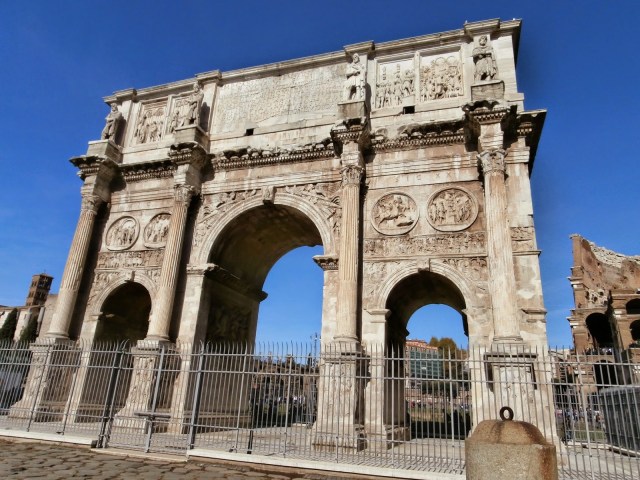 Right next to the Colosseum is the Arch of Constantine, built in the fourth century to celebrate the victory of Constantine over Emperor Maxentius. The arch, decorated with statues and reliefs, has survived the times.