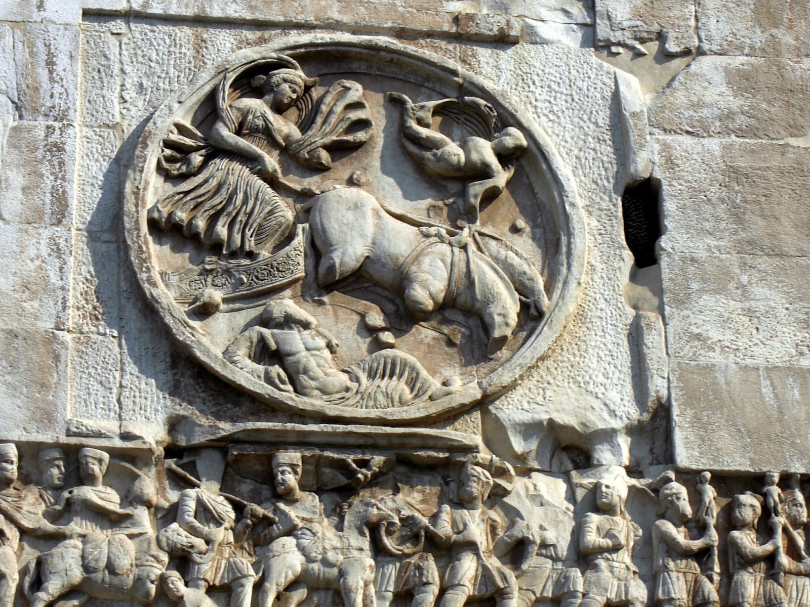 The Arch is decorated with stone carvings that depict the hero’s battles. The entire arch is a work of art.