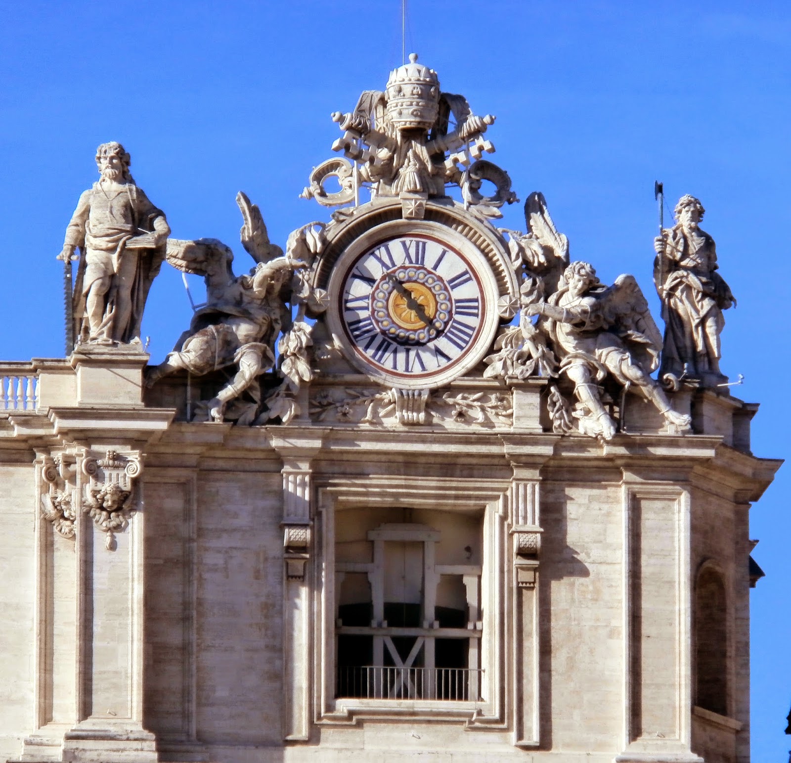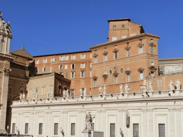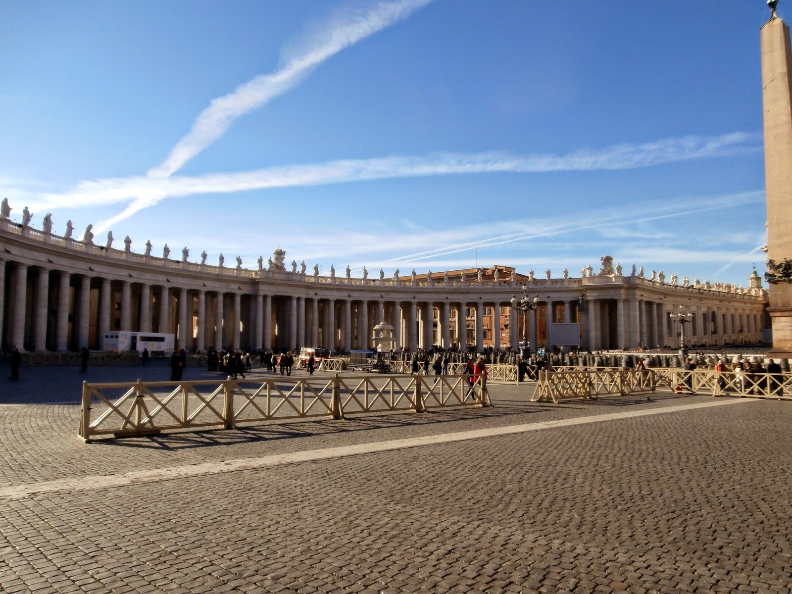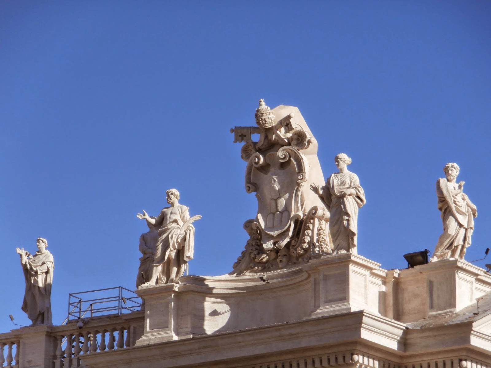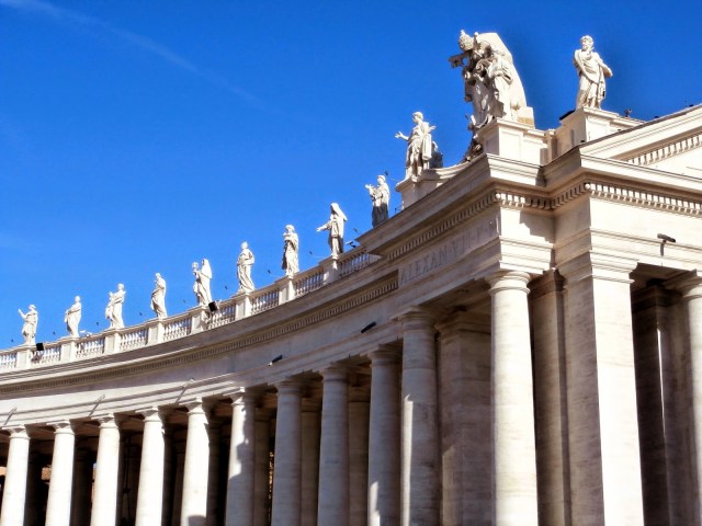 Giant statues line the rooftops of the Piazza San Pietro (St. Peter’s Square).