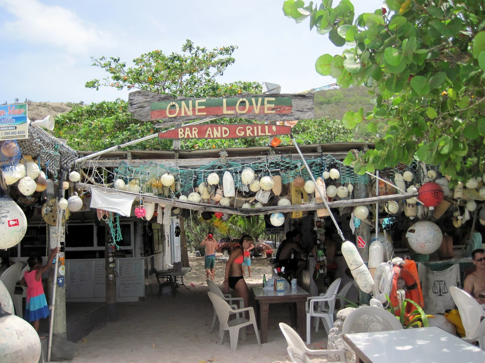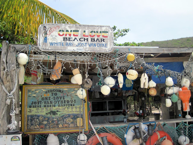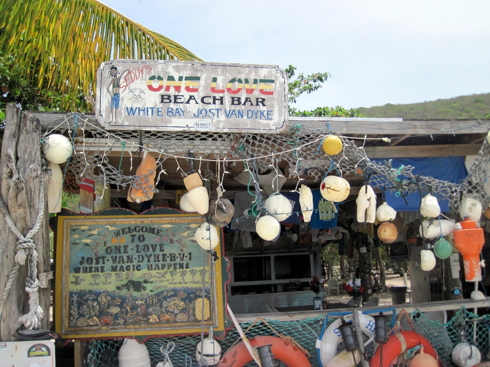 The most famous bar on White Bay is The Soggy Dollar but my favorite is The One Love Bar.