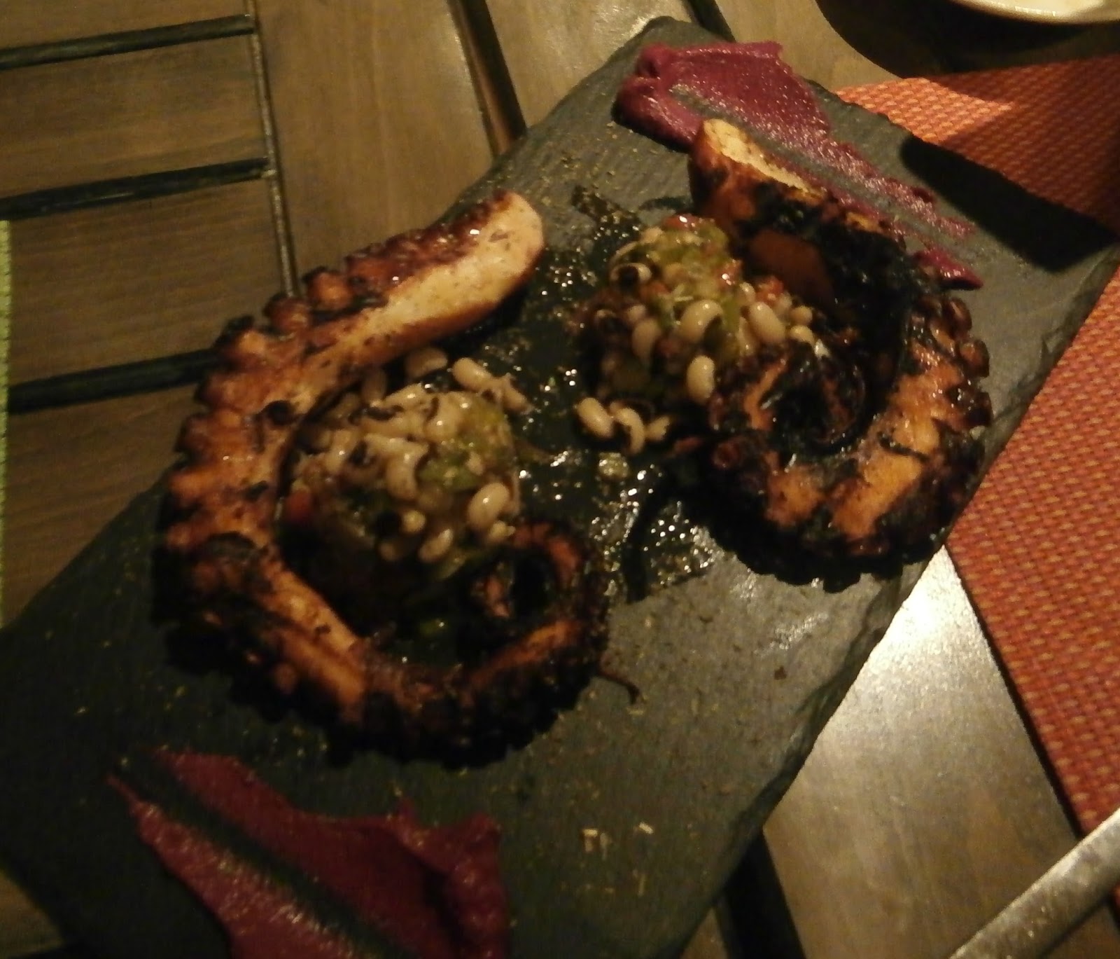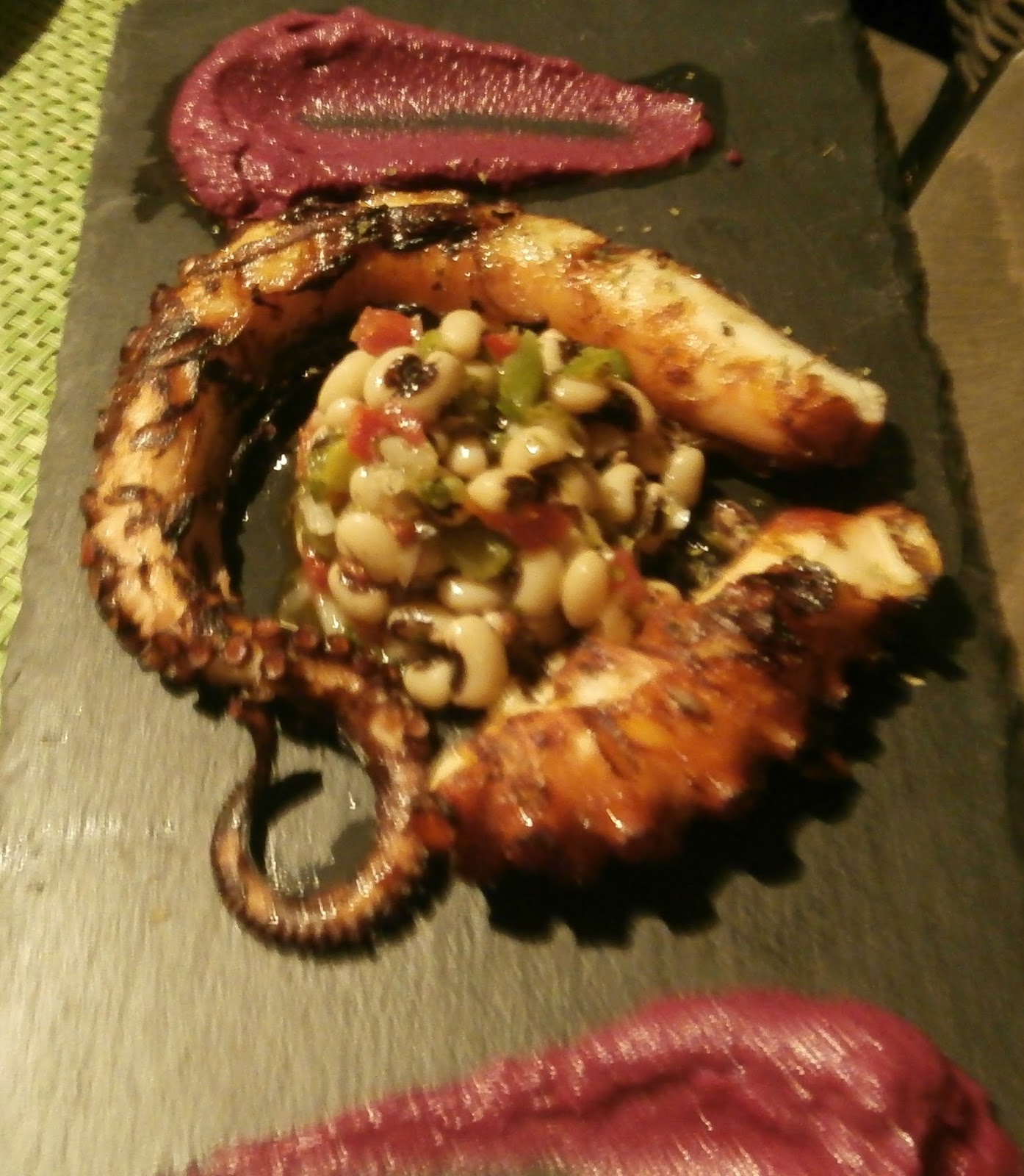 Heading to Santorini island in Greece anytime soon? Well if so, make a date to stop and eat at Pelican Restaurant and Wine Bar. Located in downtown Fira the Pelican is a beautiful place to have dinner. The restaurant is a beautiful garden that really adds to the experience. Grapes hang from the trellis above giving you the feeling you are dining al fresco in a friends grape orchard.