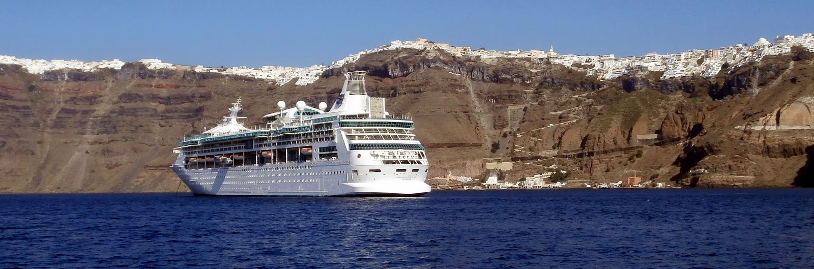 The large cruise ships are in the bay almost every day of the year. Here you can see Santorini’s largest town, Fira, on the cliff tops.