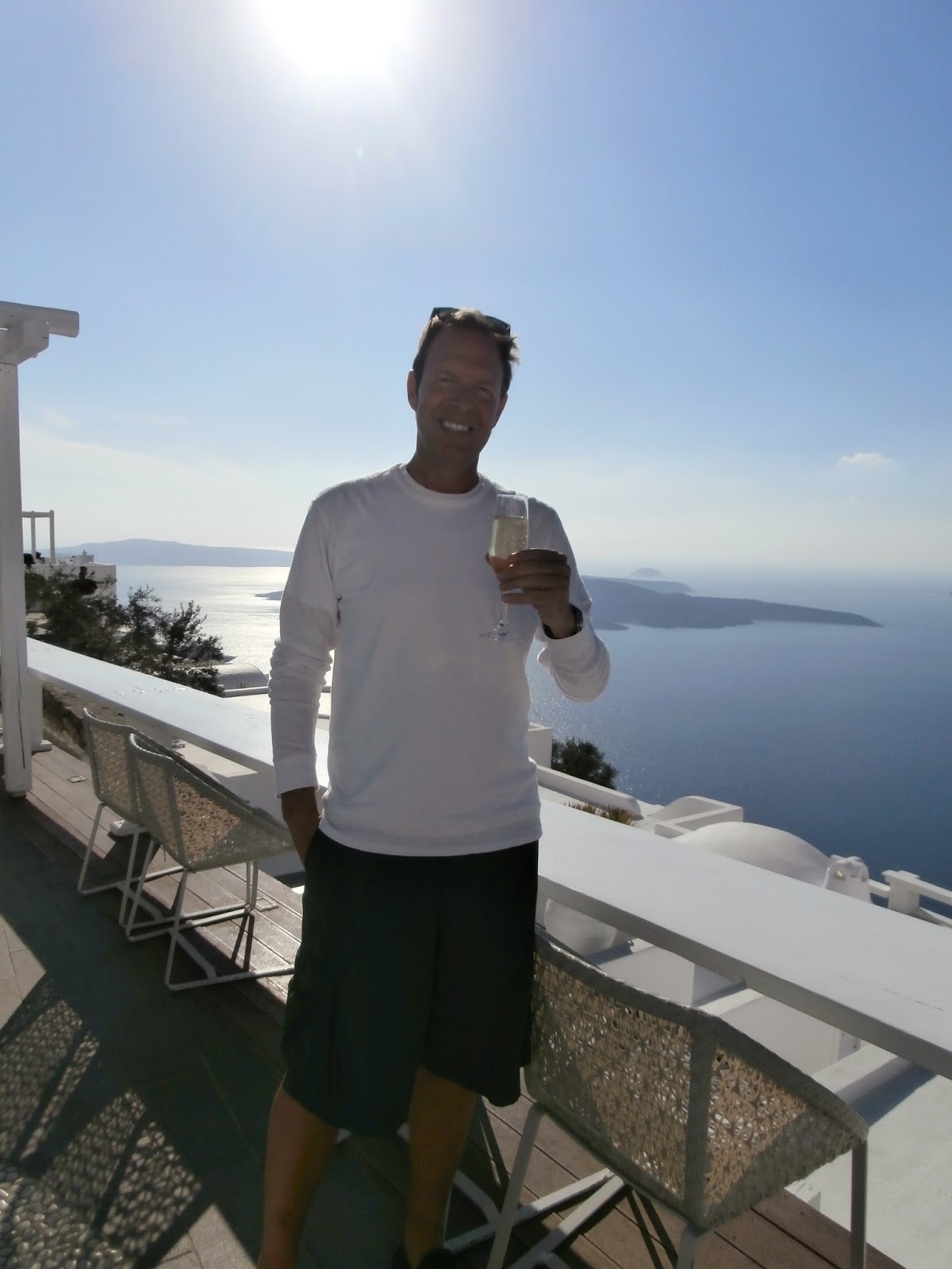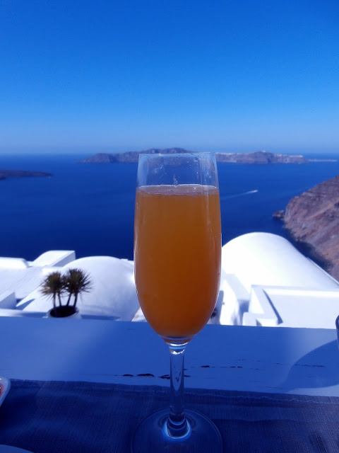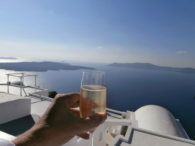 Enjoying a cold prosecco in the warmth of the afternoon Santorini sun.