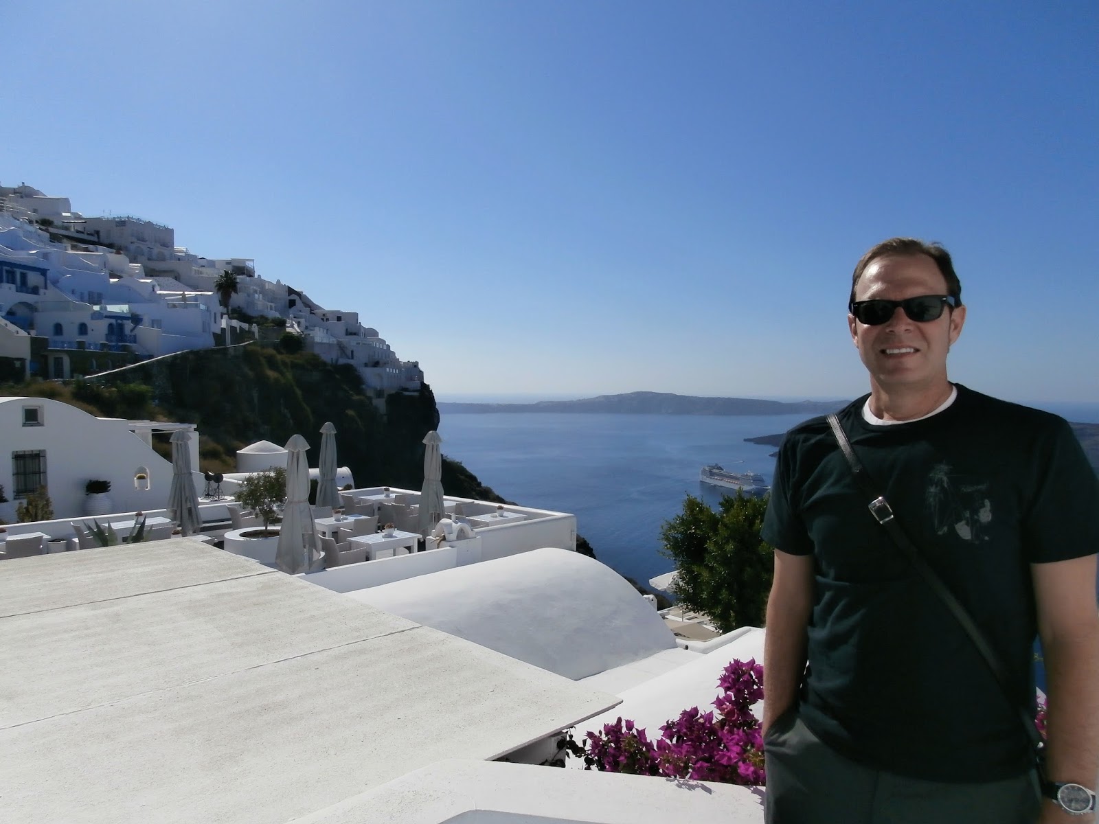 Sorry, wrong photo. Me getting ready to head down into the Santorini town of Fira.