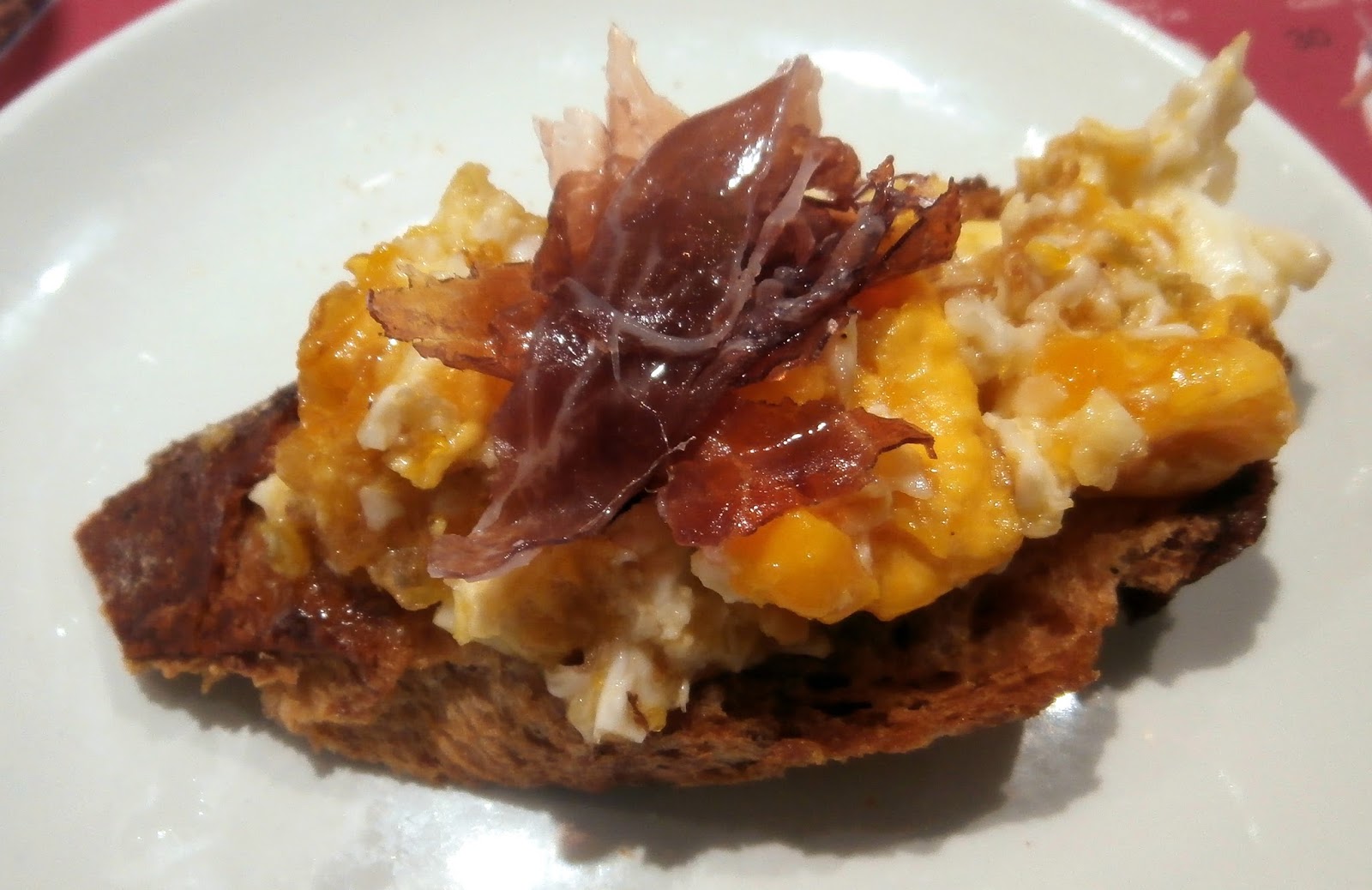 Crab, cheese and spicy chorizo, baby cuttlefish.