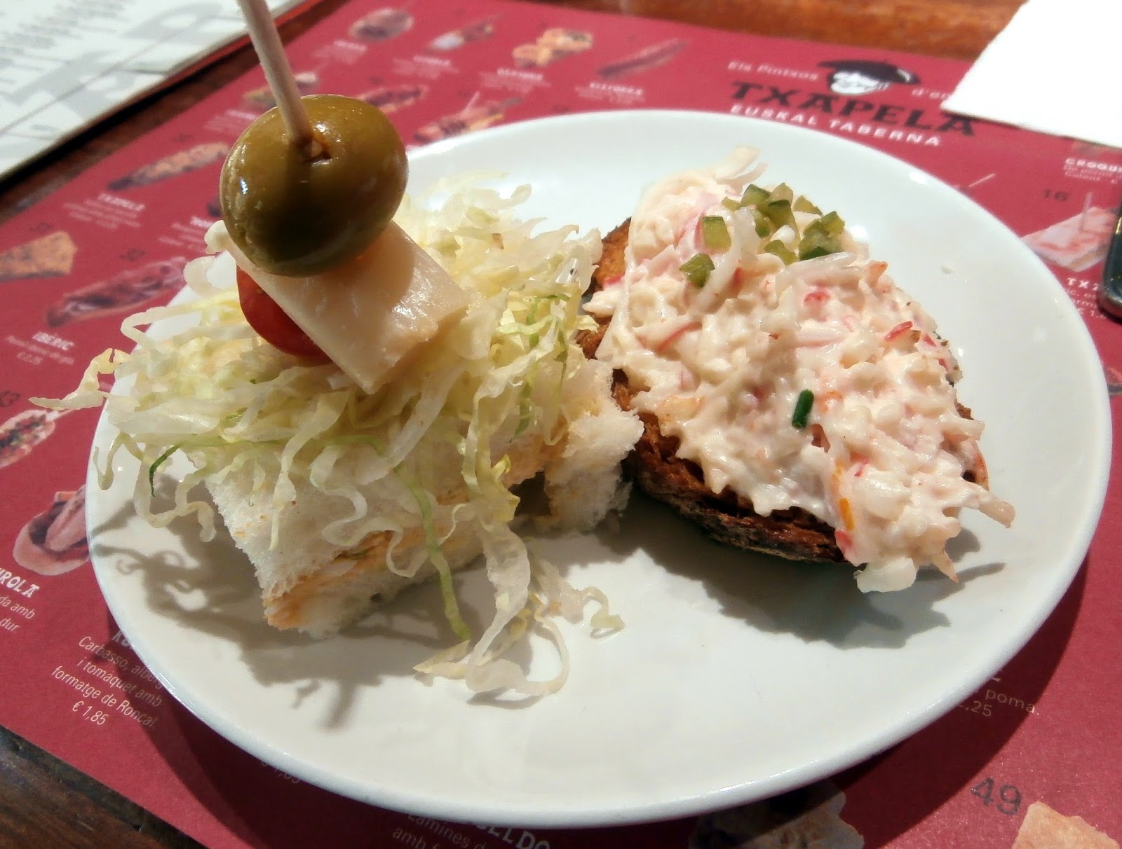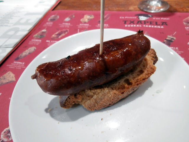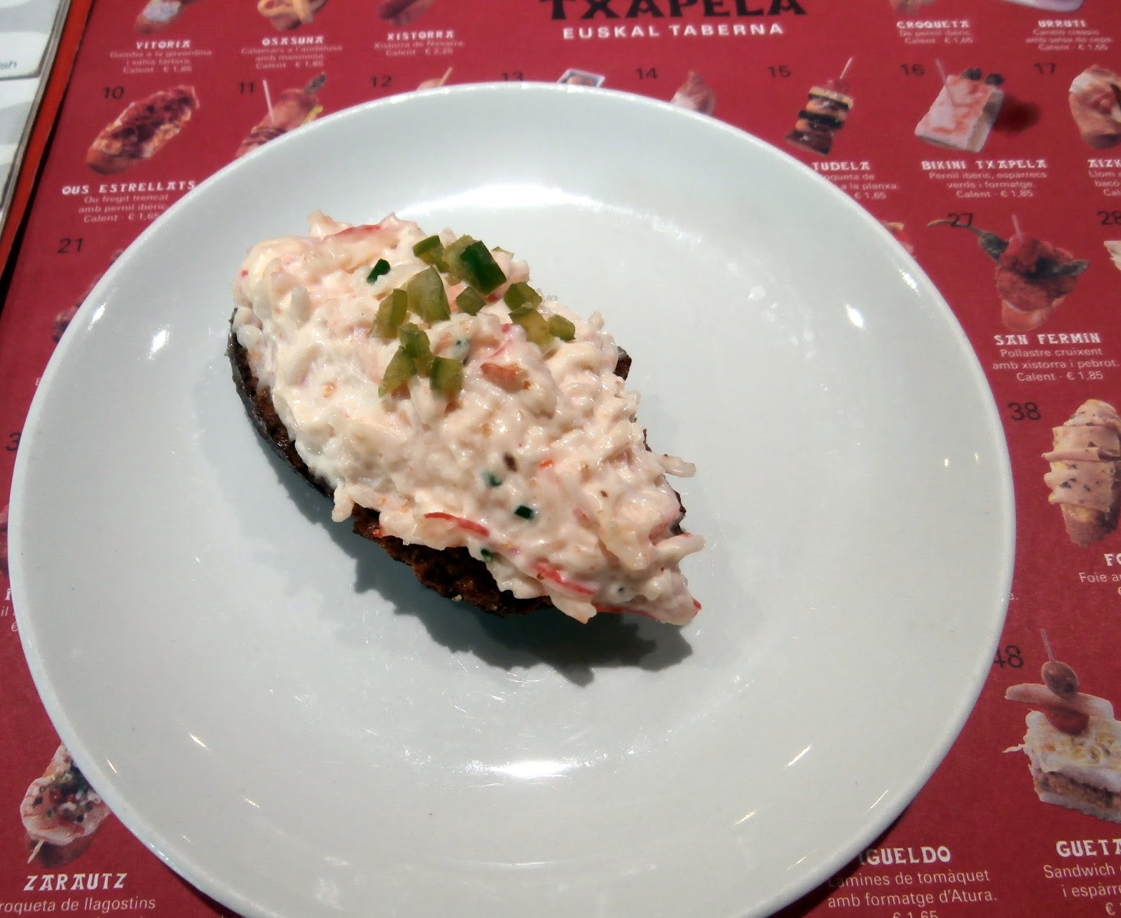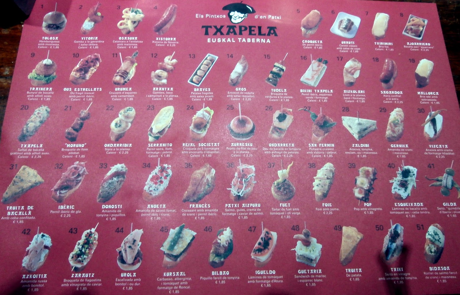 This was my second visit to Barcelona and I had made it a point to head right to Txapela for Spanish tapas. Txapela is a well known tapas bar and restaurant with 51 different tapas dishes on the menu.