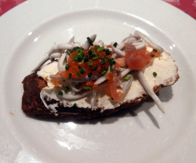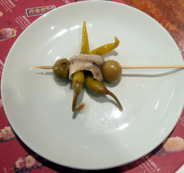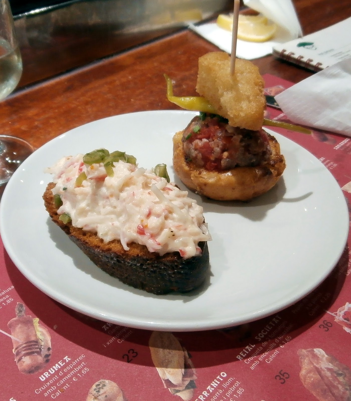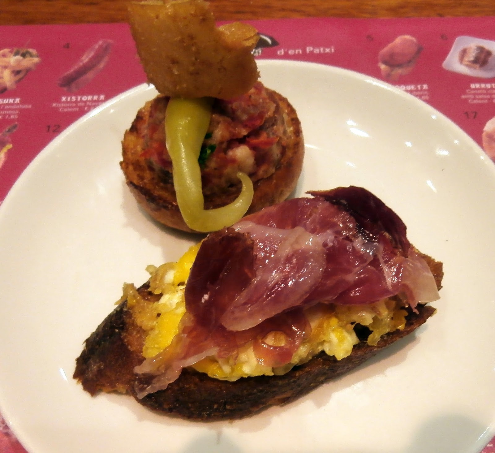 This was my second visit to Barcelona and I had made it a point to head right to Txapela for Spanish tapas. Txapela is a well known tapas bar and restaurant with 51 different tapas dishes on the menu.