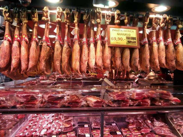 The selection of meats in La Boqueria is amazing. All of the finest quality Spain has to offer under one roof.
