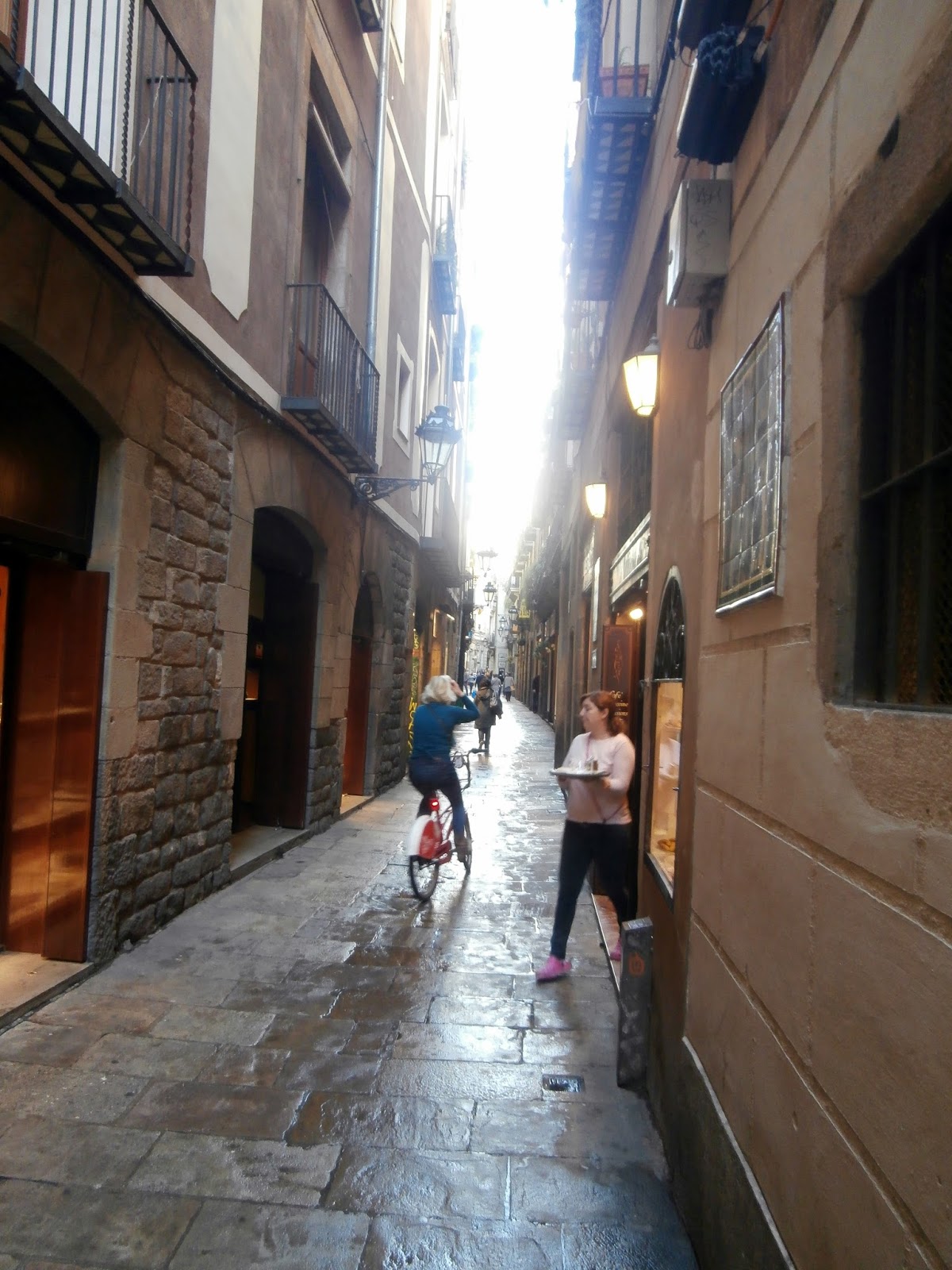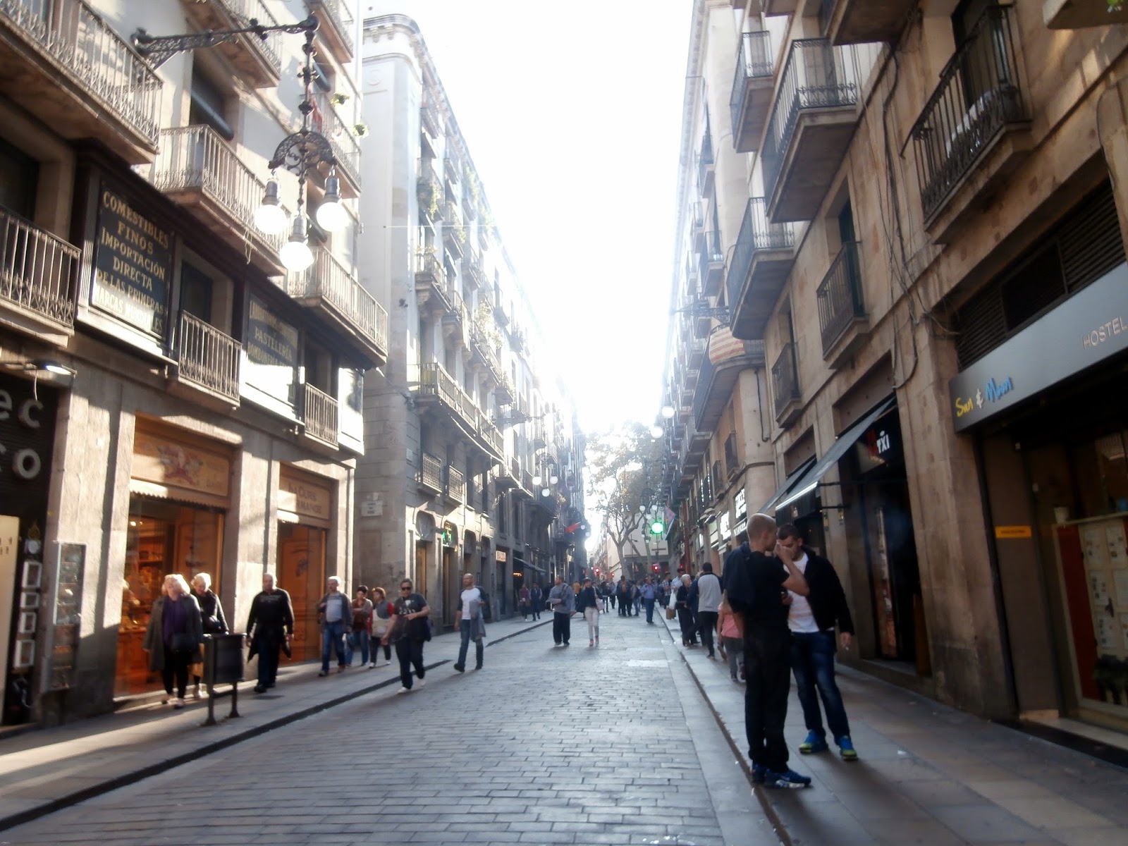 Exploring the narrow streets of Barcelona is such a great time. Shops, restaurants, and bars are just up ahead.