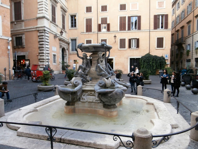 La Fontana delle Tartarughe, The Turtle Fountain, is one of my favorite fountains in Rome. Located in the Sant’Angelo District of Rome it resides just beside the Jewish Ghetto neighborhood. Seek this beautiful treasure out as it can be easily missed. It is truly a treat. Here yours’ truly in a picture moment.
