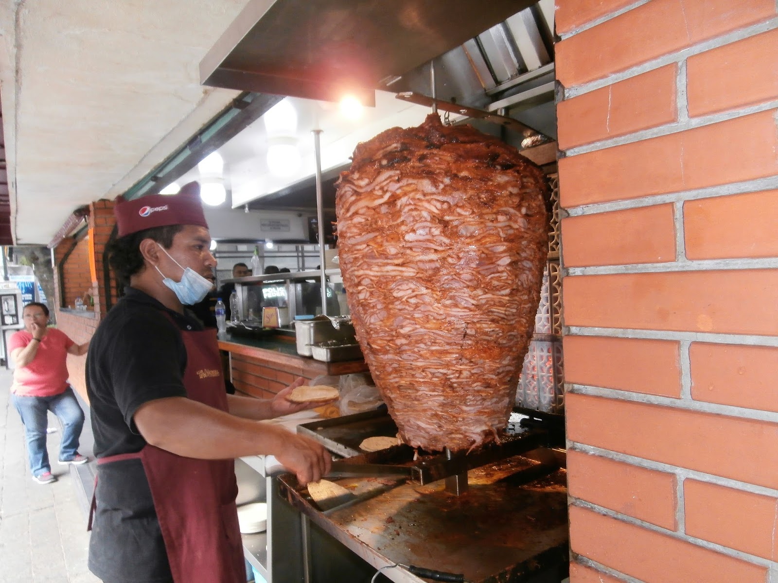 Tacos al pastor made from shawarma spit grilled meat is a popular for locals and visitors alike. I had mine on corn tortillas with lime and washed them down with a cold Mexican beer. Delicious!