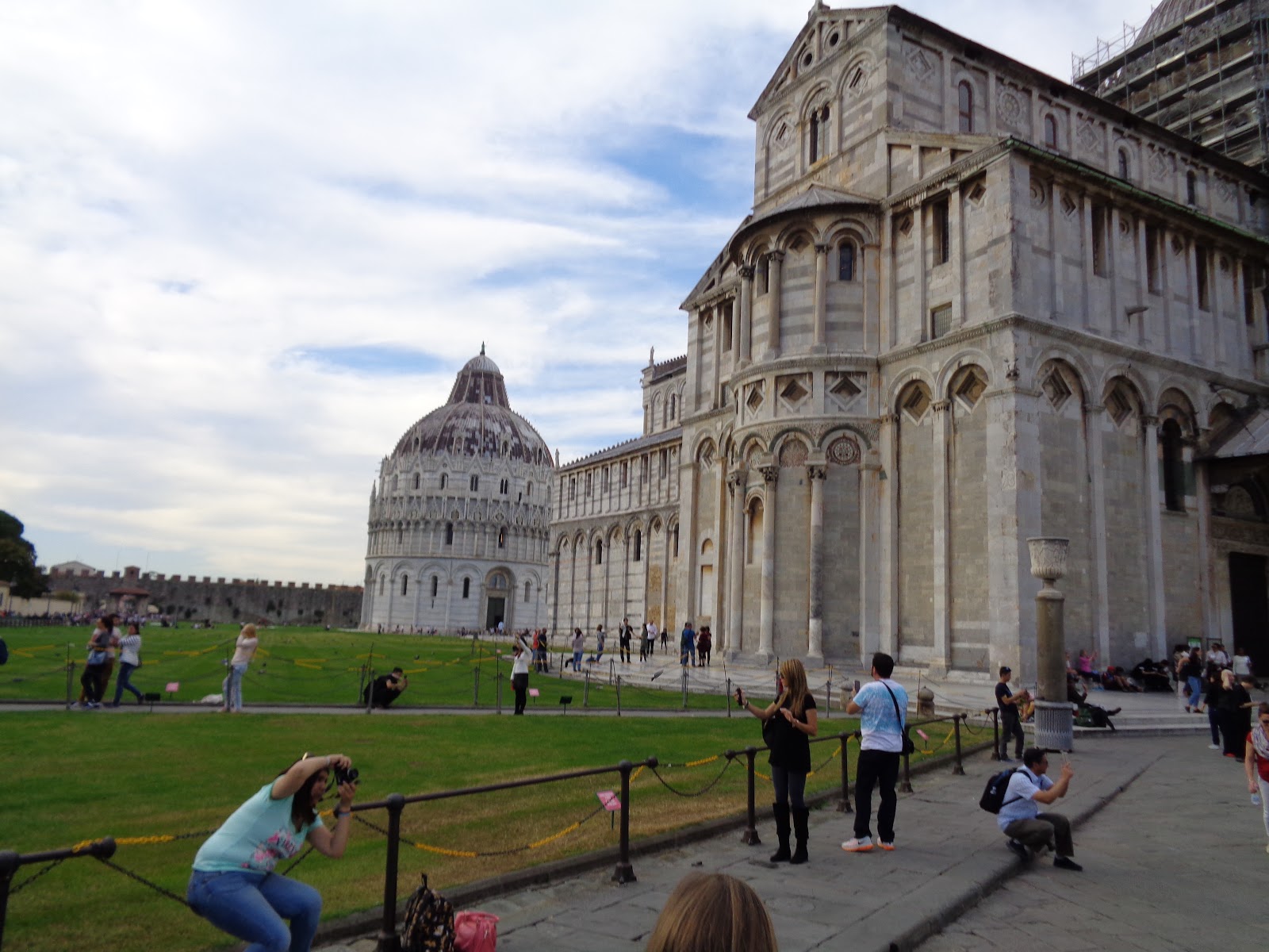 The tower sits beside the Pisa Baptistery and the Pisa Cathedral, two strikingly impressive structures in their own right. The grounds of the square are open and expansive and very beautiful.