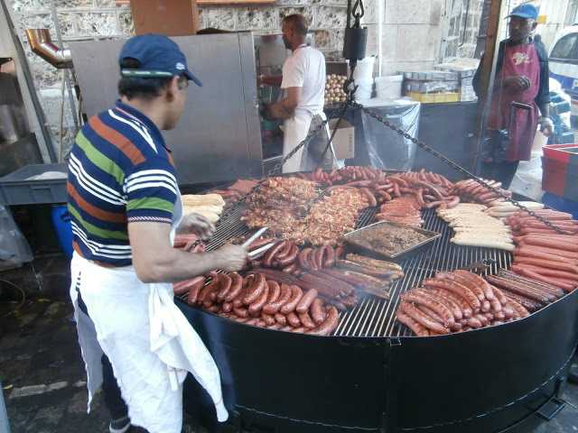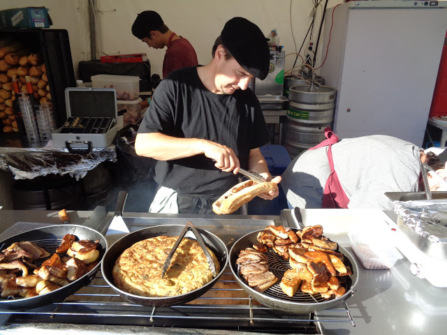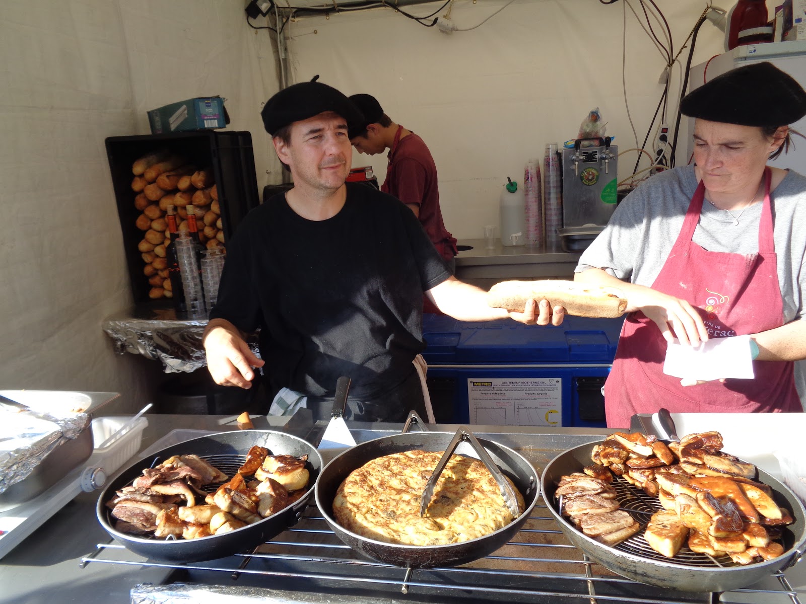 Vendors preparing their dishes at the Sacre Coeur market on the weekends.