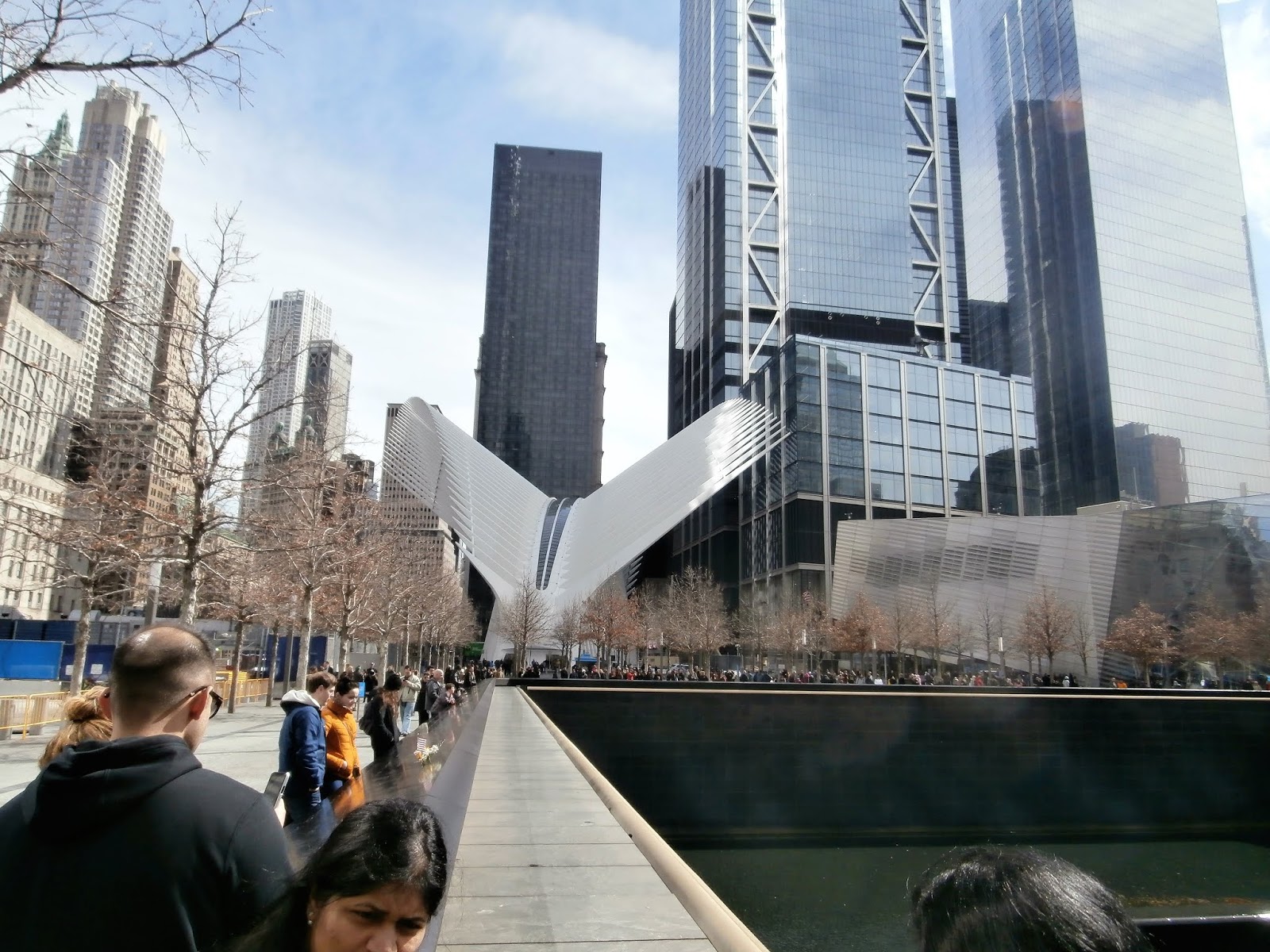 The plaza also hosts the 911 Memorial Museum as well as the Oculus which is a huge transportation hub and shopping mall.