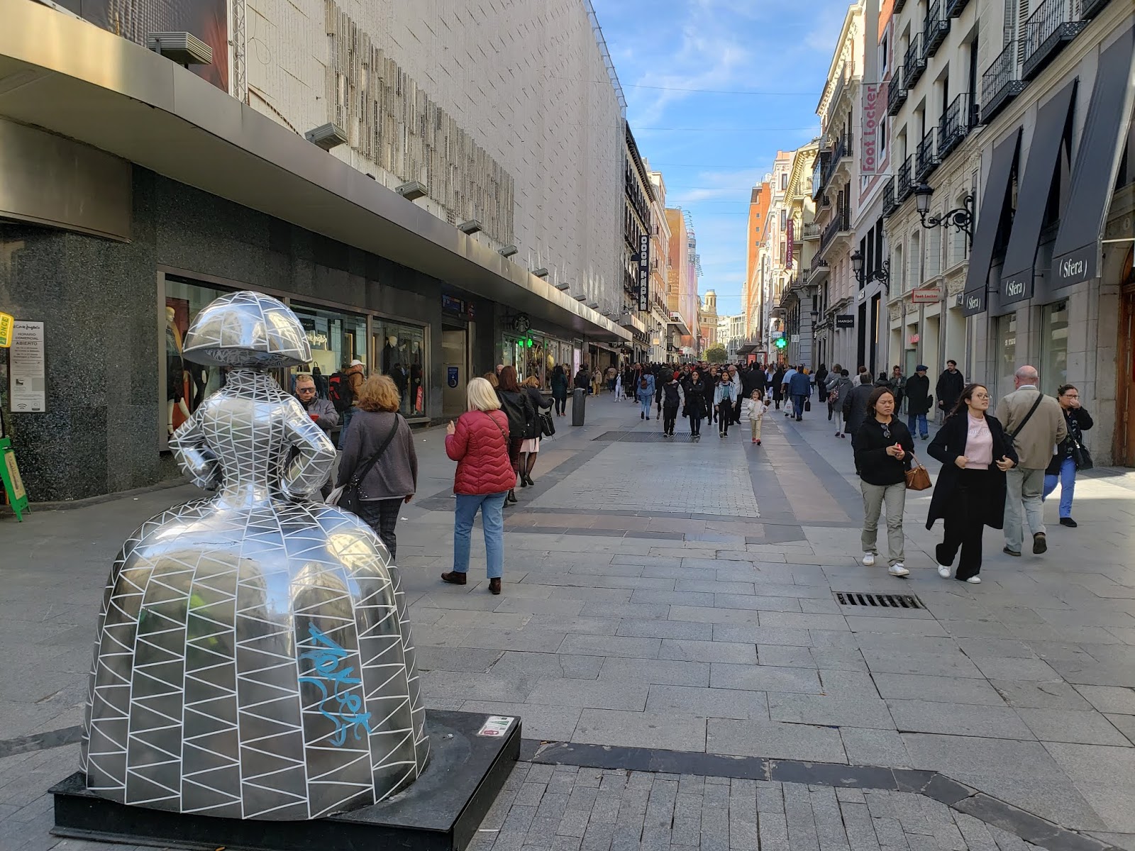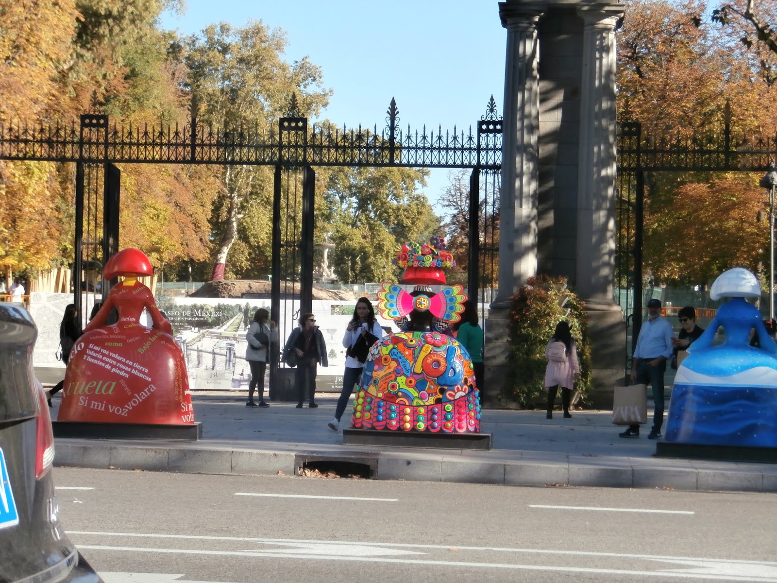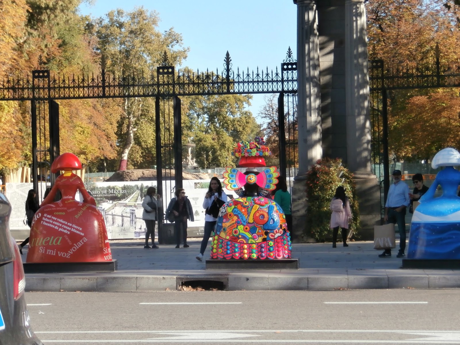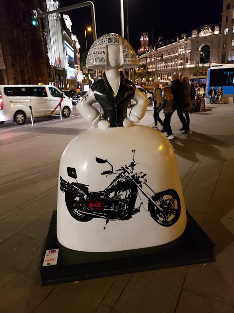 The statues are about 6 feet tall and are made from fiberglass. Each commissioned artist is at liberty to use the statue as a canvas to share original concepts. Eighty such sculptures are placed in prominent areas all around Madrid and will be on display thru July 2020 at which time they may be put on display in other cities around the world.