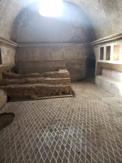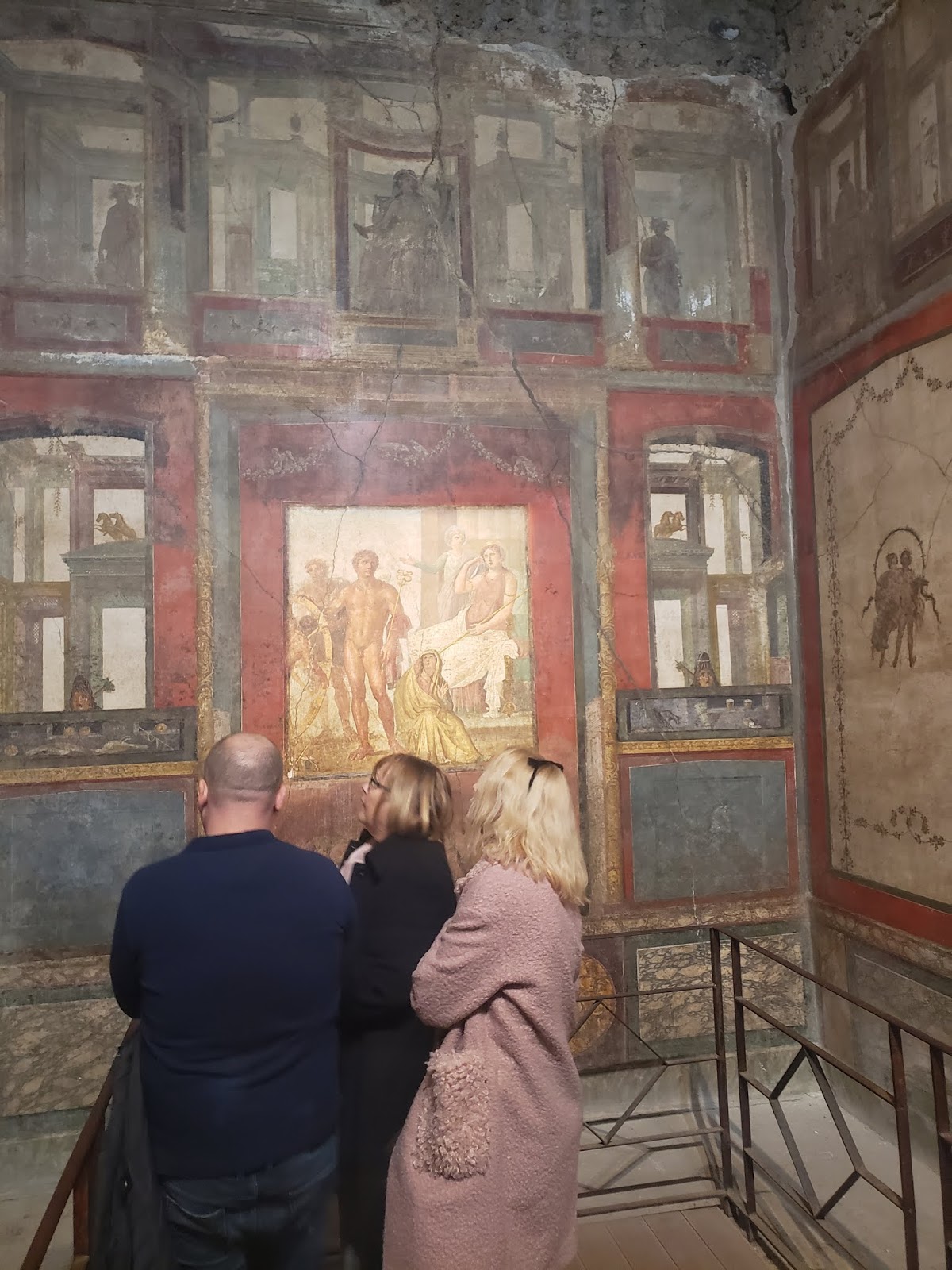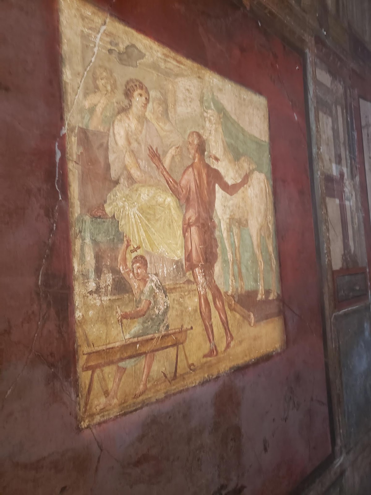 Pompeii has many famous buildings and pictured here is the inside of one it’s most notable. Pompeii’s famous brothel. Murals on the wall survived to illustrate what would have been scenes playing out inside one of the many bed chambers.