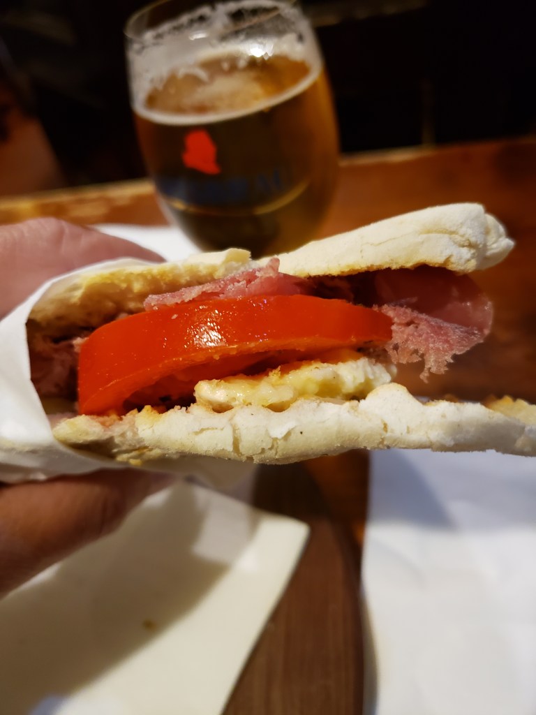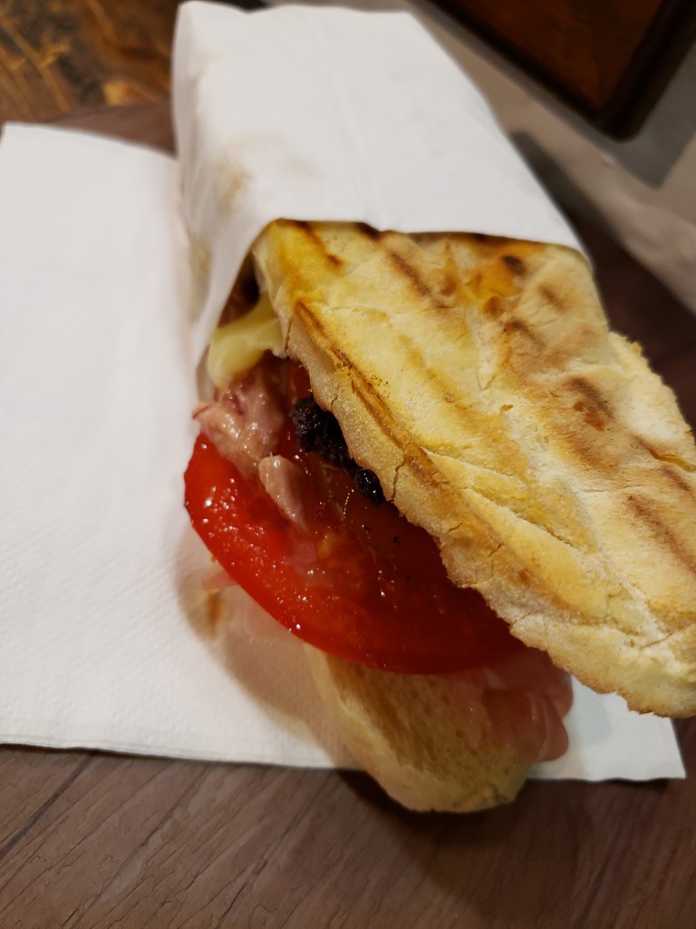 In short order the waitress arrived at my table and delivered a delicious looking panini wrapped in paper exposed at one end along with my beer. I could not be more happy. The sandwich looked every bit as good as it tasted. So good in fact that I made it back to De Santis one other day for lunch before I left Milan.