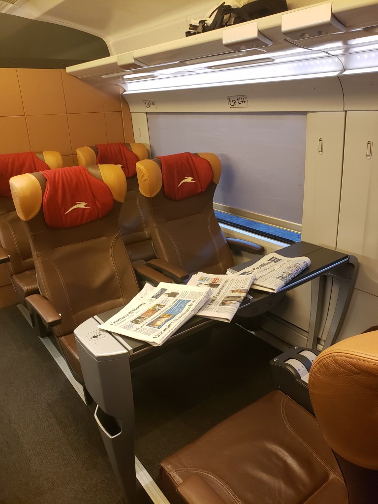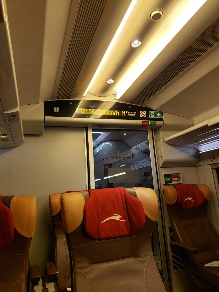 Below I’ve posted two short videos that I made. The first video is in the Milan central train station illustrating how to read the arrival and departure boards and locate your train in the terminal. The second short video shows what it looks like inside the Business class section of the high speed trains traveling along at 300 kilometers per hour.